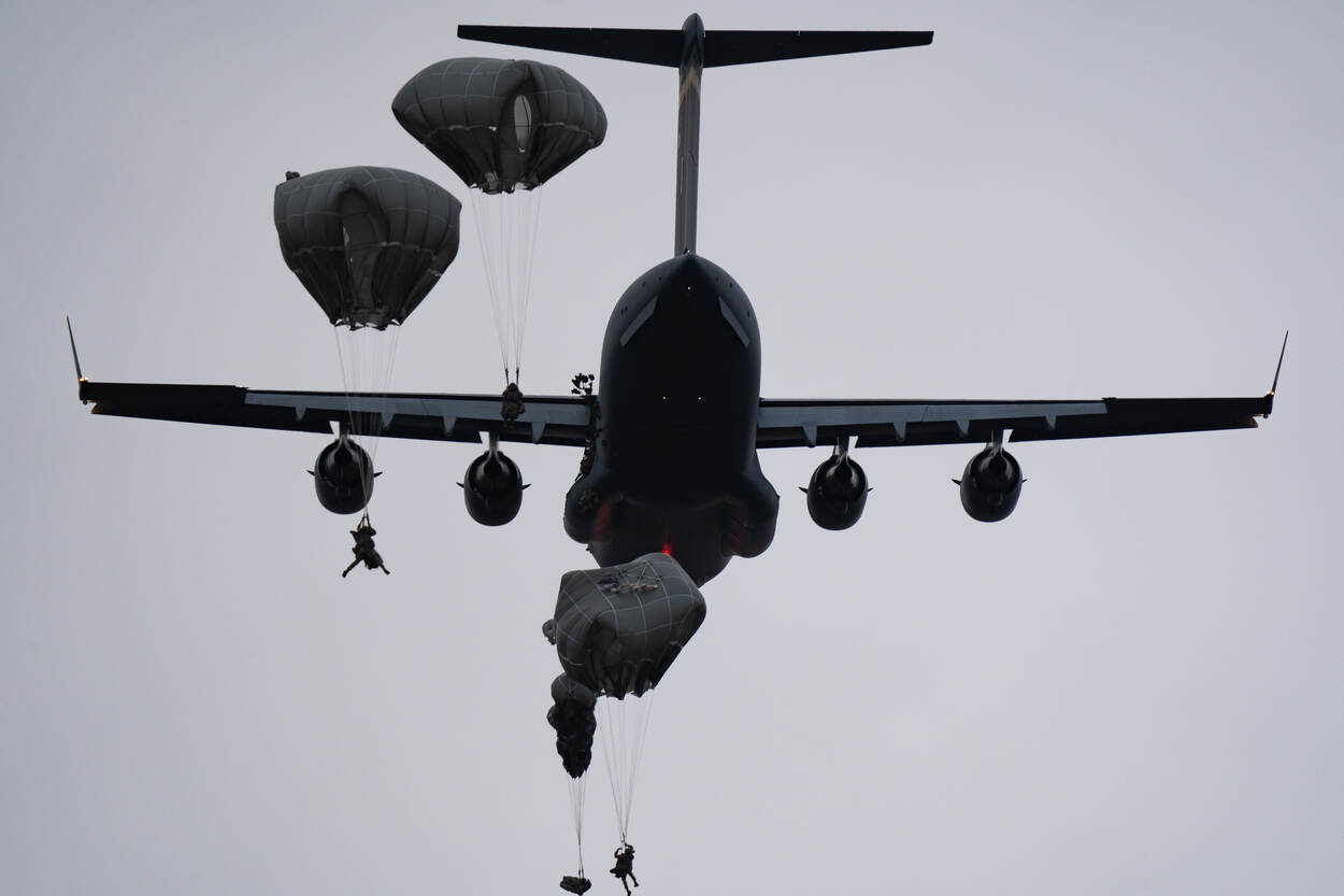 Parachutisten van 11 Airborne Division ‘Arctic Angels’ dalen af boven de staat Alaska na een sprong uit een C-17 Globemaster III. Arctic Aloha heet deze gezamenlijke oefening van land- en luchtmacht. De para’s bereiden zich hiermee voor op operaties op en rond Amerikaans grondgebied, vaak onder zeer extreme omstandigheden. De grondtemperatuur in de noordelijkste staat, grenzend aan Rusland, is op dit moment al dik onder de nul graden celsius, hoog in de lucht nog veel lager. Julia Lebens van de US Air Force heeft het tafereel vereeuwigd.