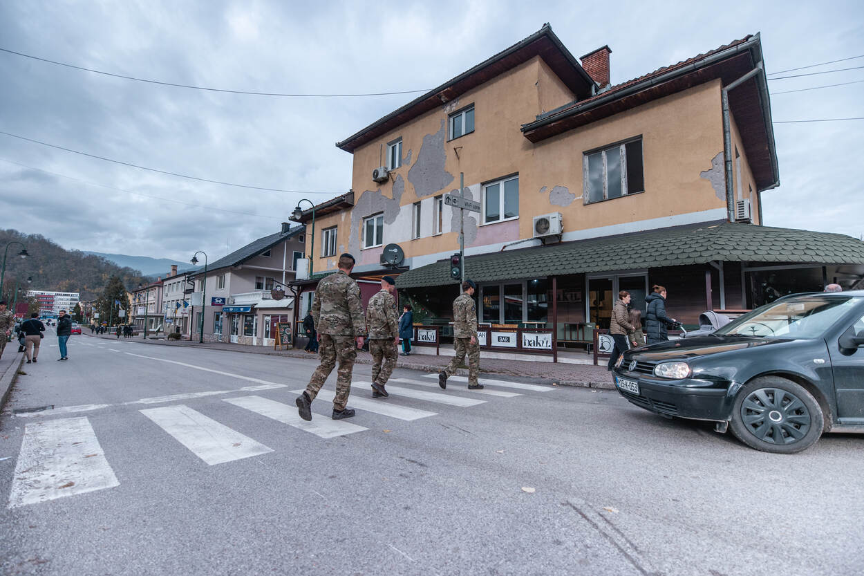 De oorlog in Bosnië ligt inmiddels bijna 30 jaar achter ons. Iedereen die daar geweest is, zou bijna denken dat deze foto van onze fotograaf sergeant-majoor Jan Dijkstra uit die periode is. Immers, de kogelinslagen zijn nog steeds duidelijk zichtbaar op de muren. Op dit moment patrouilleren militairen van het Korps Mariniers in de regio namens de Europese Operatie ALTHEA. Die is ook bekend onder de naam EUFOR BiH, voluit European Union Force in Bosnia and Herzegovina. Het is de vredesmacht die toeziet op de naleving van het Verdrag van Dayton uit december 1995, dat destijds een einde maakte aan de oorlog op de Balkan.