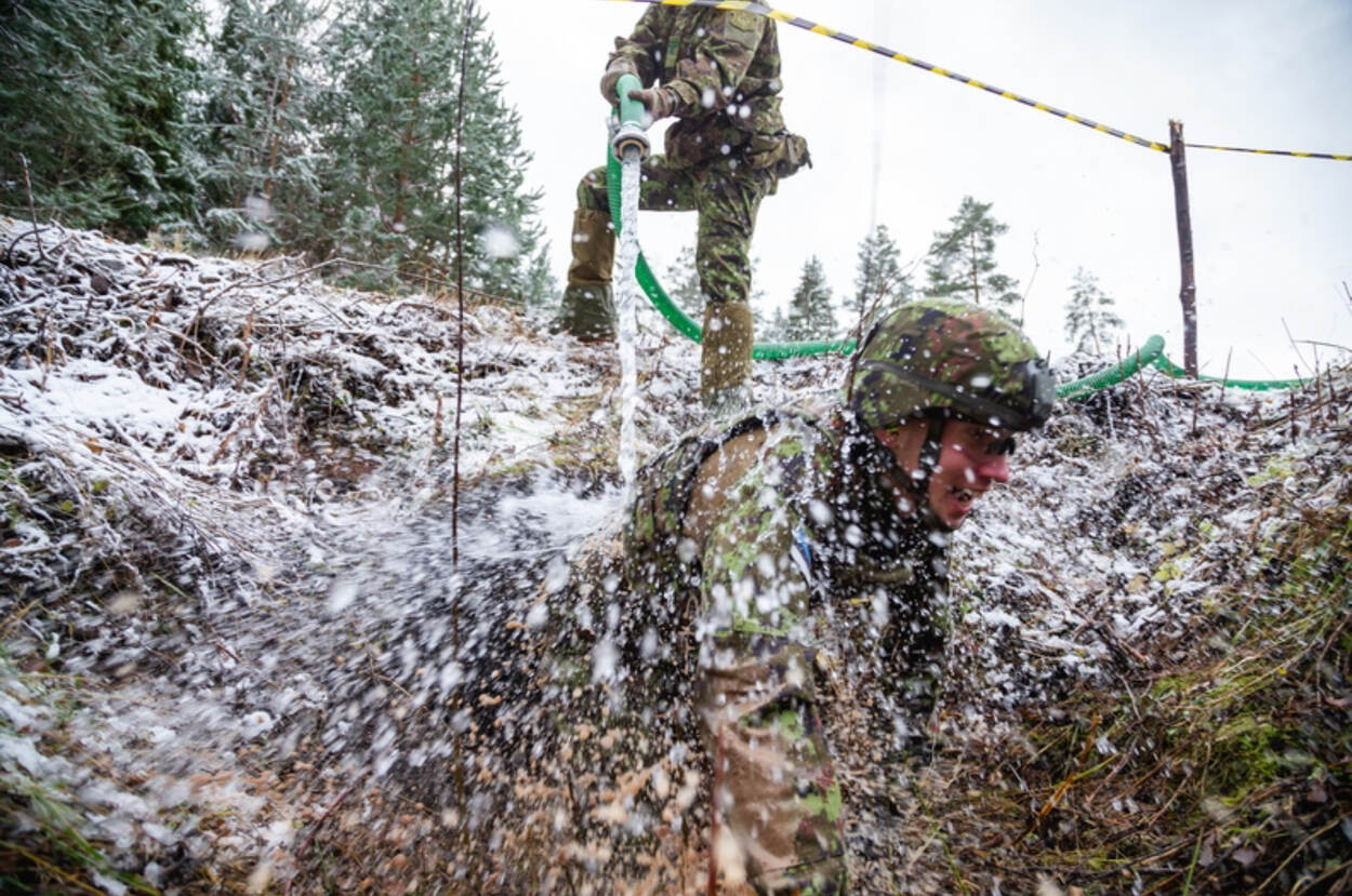 De cadetten van de Koninklijke Militaire Academie in Breda hebben het best zwaar, maar dat geldt ook voor de collega’s van de Estse officiersopleiding. Sinds de inval van Rusland op De Krim (2014) en in andere delen van Oekraïne, hebben de militaire opleidingen in Estland en de andere Baltische Staten bepaald niet te klagen over de instroom. Dat een instructie soms gepaard gaat met een nat pak, hoort er nu eenmaal bij. De foto komt van het Eesti Kaitsevägi, oftewel de Estse strijdkrachten.