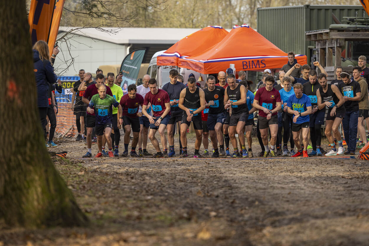 Tientallen militairen drukken hun sporthorloges aan bij de start van het Open Kampioenschap Cross in Vught.