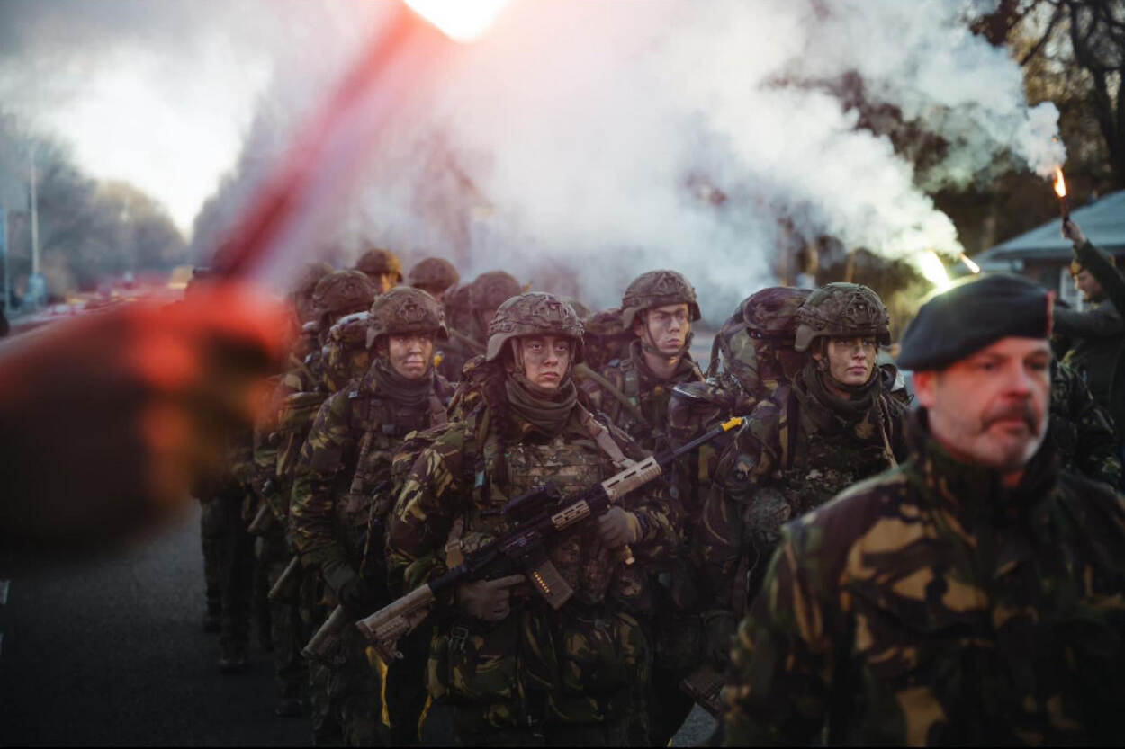 Onder een luid applaus lopen zogenoemde dienjaarmilitairen door de poort van de Johannes Postkazerne. Ze hebben hun opleiding met een eindmars afgerond en kunnen nu een jaar aan de slag bij 43 Gemechaniseerde Brigade. Ze mogen ze zich nu ook soldaat der tweede klasse noemen. De komende maanden vormen zij het stafwachtpeloton van de brigade en bieden zij ondersteuning aan andere eenheden. Ook draaien de dienjaarmilitairen mee in verschillende oefeningen. Staffotograaf Brian Vonk tekende voor de foto.