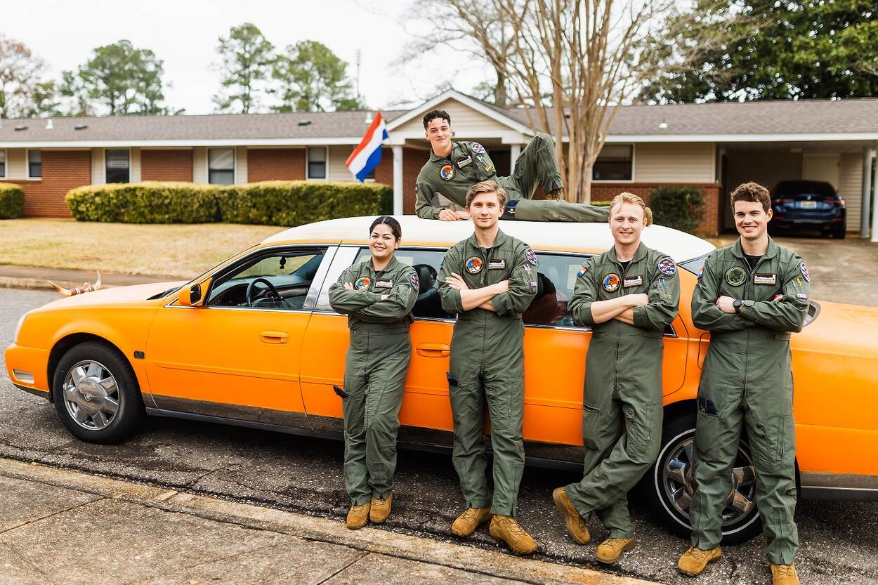 Op kazernes is een voorbijrijdende limousine doorgaans een zeldzaamheid, laat staan een oranje. Maar niet op Fort Novosel in de staat Alabama. Hier in het diepe zuiden van de Verenigde Staten is de aanblik van een opvallend gepimpte zesdeurs Cadillac de gewoonste zaak van de wereld. Het is een traditie die Nederlandse luchtmachtstudenten er al ruim twee decennia in ere houden.