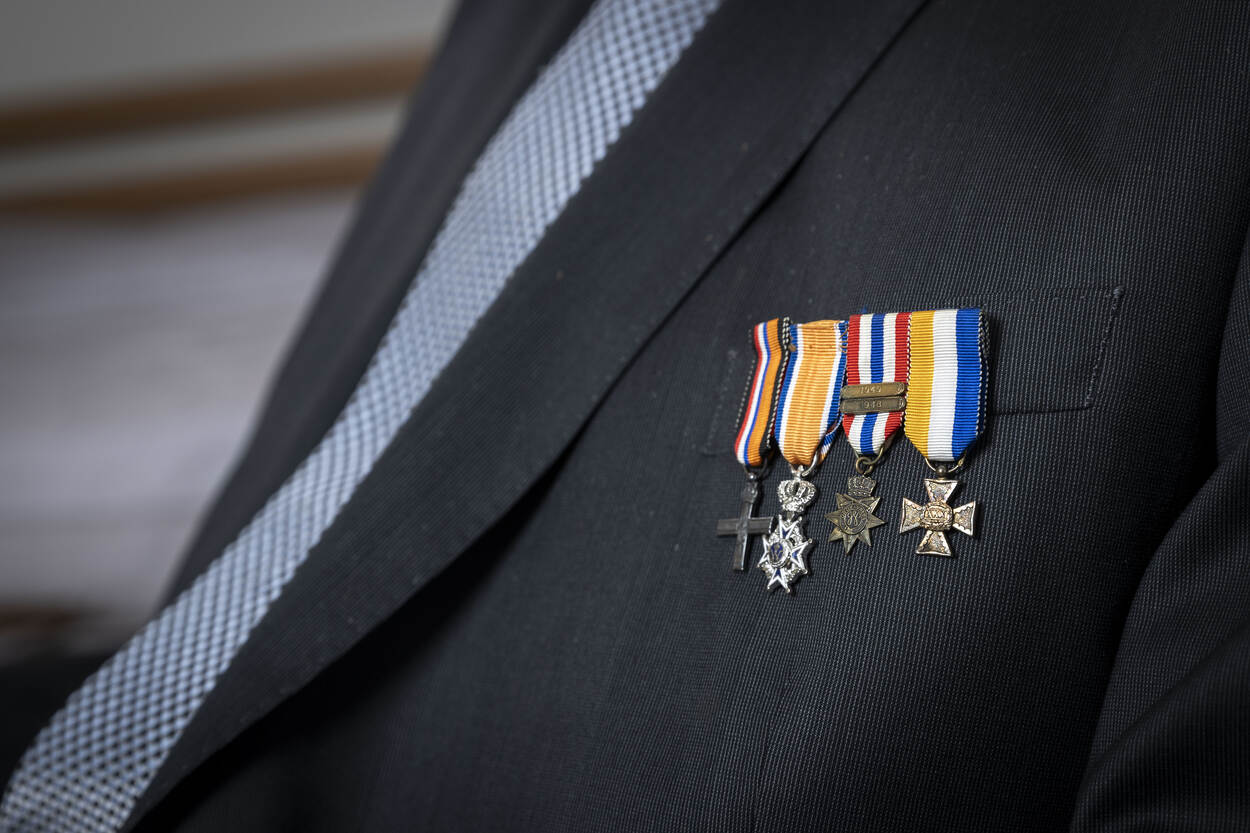 Verschillende medailles sieren zijn borst, waaronder een beloning voor verzetswerk in de Tweede Wereldoorlog. “Mijn vader zat bij de marechaussee en moest de Sicherheitsdienst (inlichtingendienst van de Duitsers red.) ondersteunen bij het arresteren van mensen. Daags ervoor hoorde hij al wie er op de lijst stonden. Hij ging dan bij die mensen langs om ze te waarschuwen. ‘U krijgt morgen bezoek’, zei hij dan. Ik heb hem daar bij geholpen.”