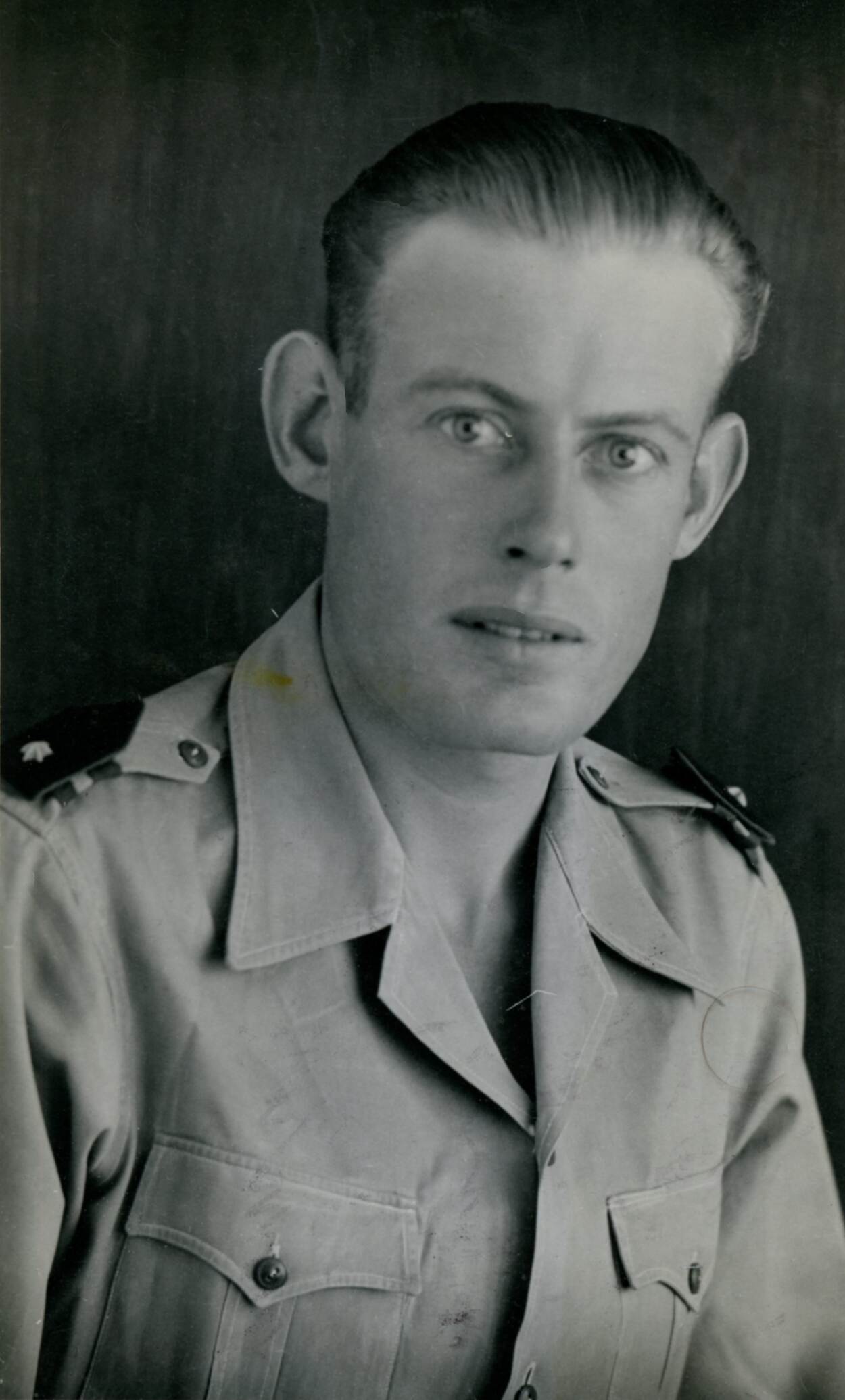 Portretfoto in sepia van Bert Carper als twintiger.