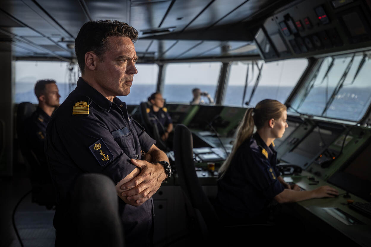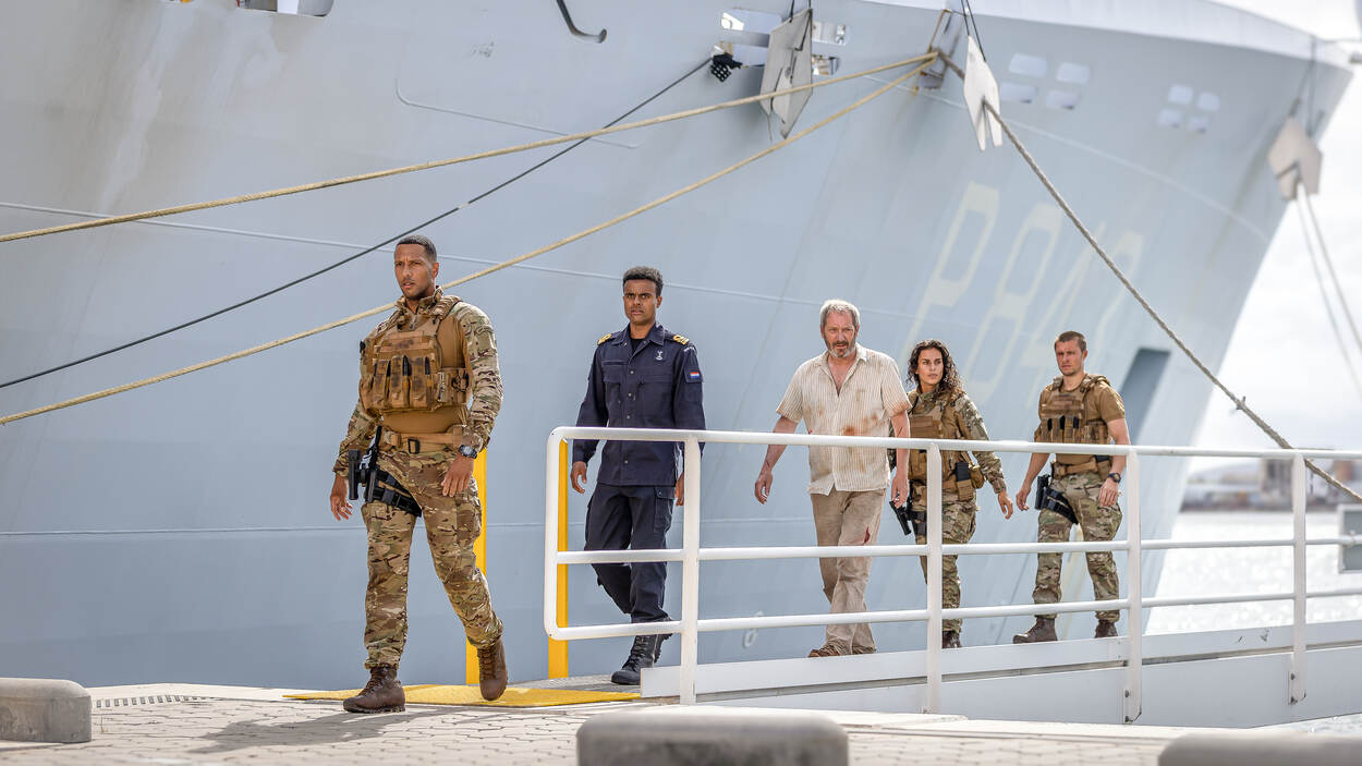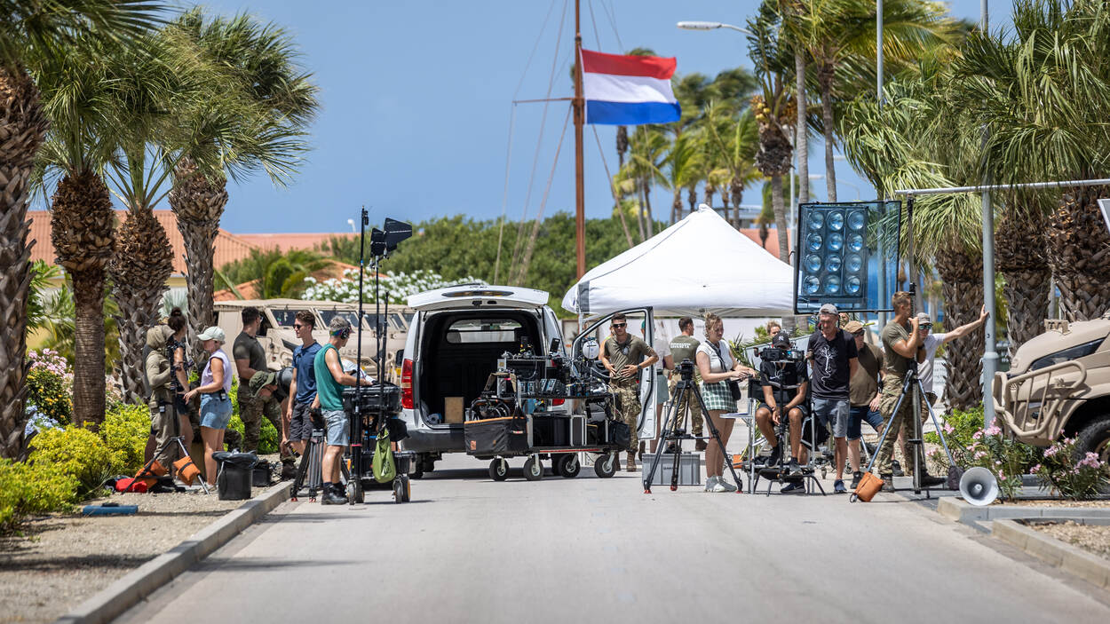 Defensiecollega’s in de Carib wisten vooraf wel dat er opnamen zouden plaatsvinden, maar niet waarvoor of met welke acteurs. “Ik werd er aangenaam door verrast”, vertelt roerganger op Zr.Ms. Groningen matroos-1 Teske. “Je ziet niet elke dag hoe het eraan toe gaat op een filmset.” Ze was aan het werk in de West toen ze werd gevraagd om te figureren tijdens de opnames, die in de zomer van 2022 plaatsvonden op en rond Curaçao, Aruba en Saba. “Of je iets van mij gaat terugzien is de vraag. Ze filmen zó veel."
