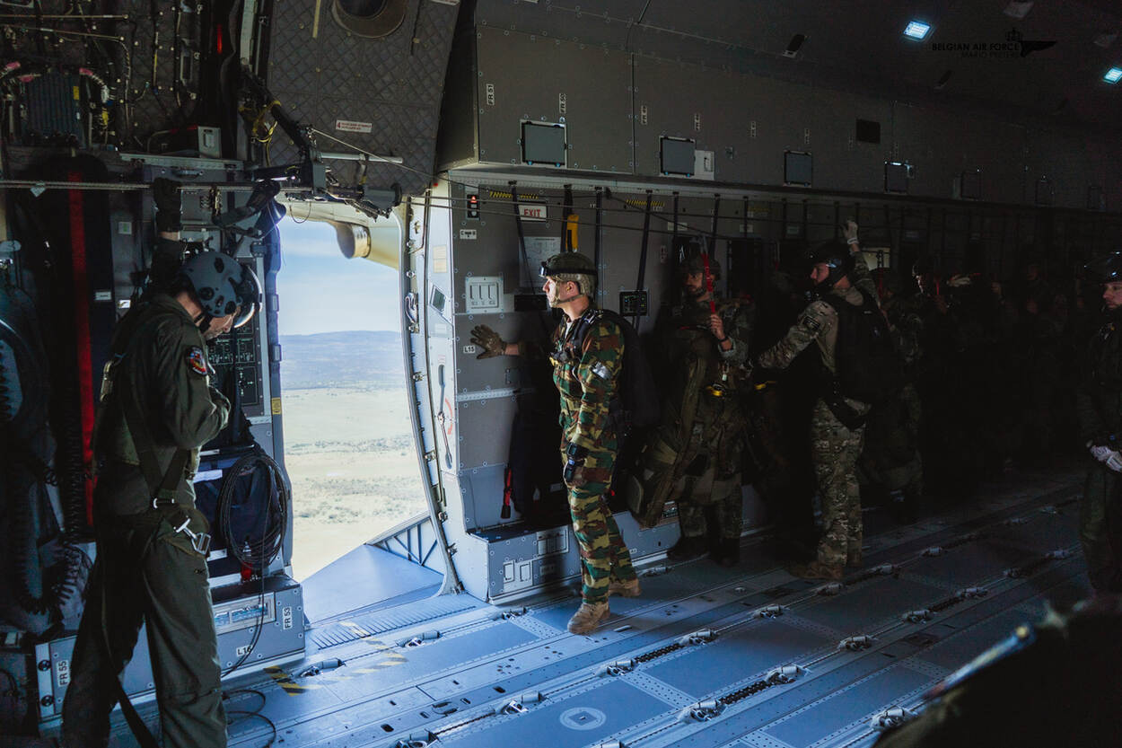 Een deel van 13 Raiding Squadron van het Korps Mariniers heeft afgelopen week, op uitnodiging van het Belgische Special Operations Regiment, deelgenomen aan een training in Portugal. Met eenheden van de Paracommando’s en Portugese pathfinders hebben de mariniers airborne-operations beoefend. Hiervoor werden twee Belgische A400M vliegtuigen gebruikt. Mario Peeters was erbij om een en ander vast te leggen, waaronder deze foto en het volgende beeld.
