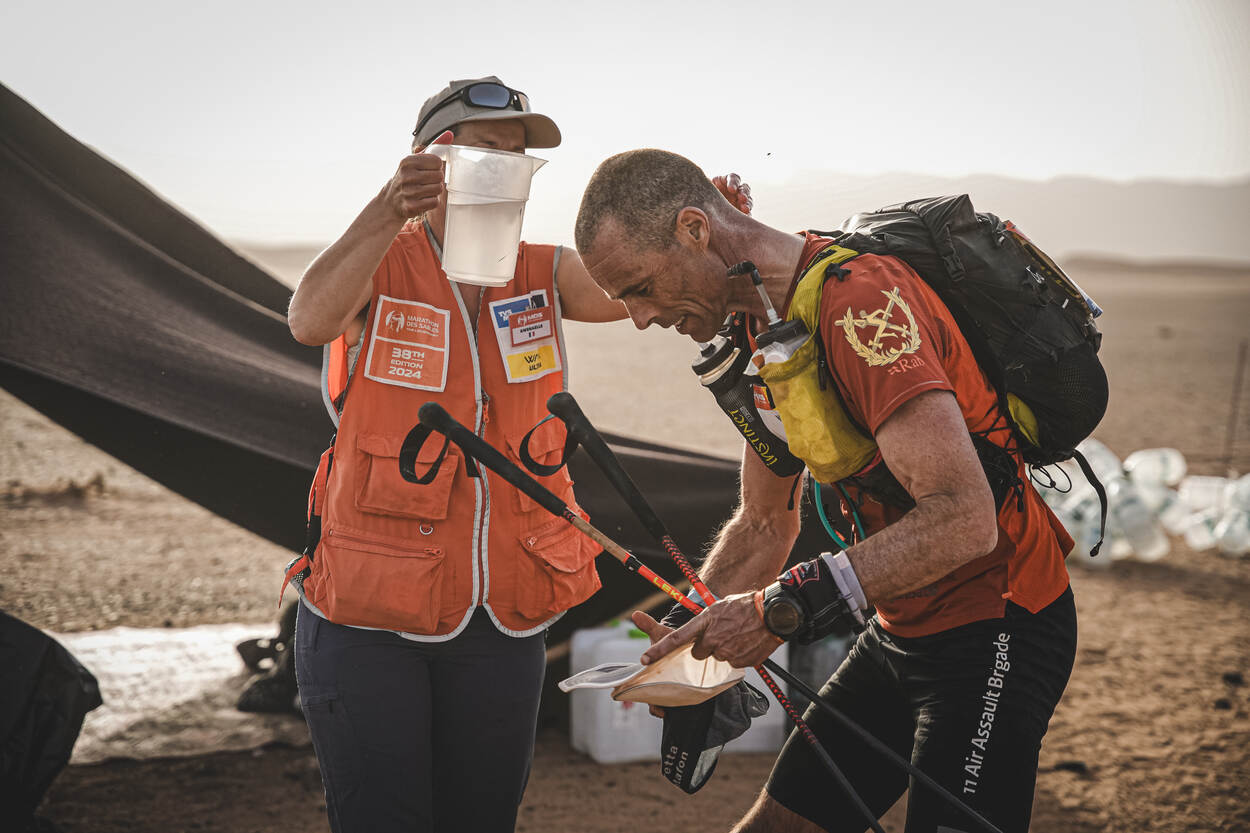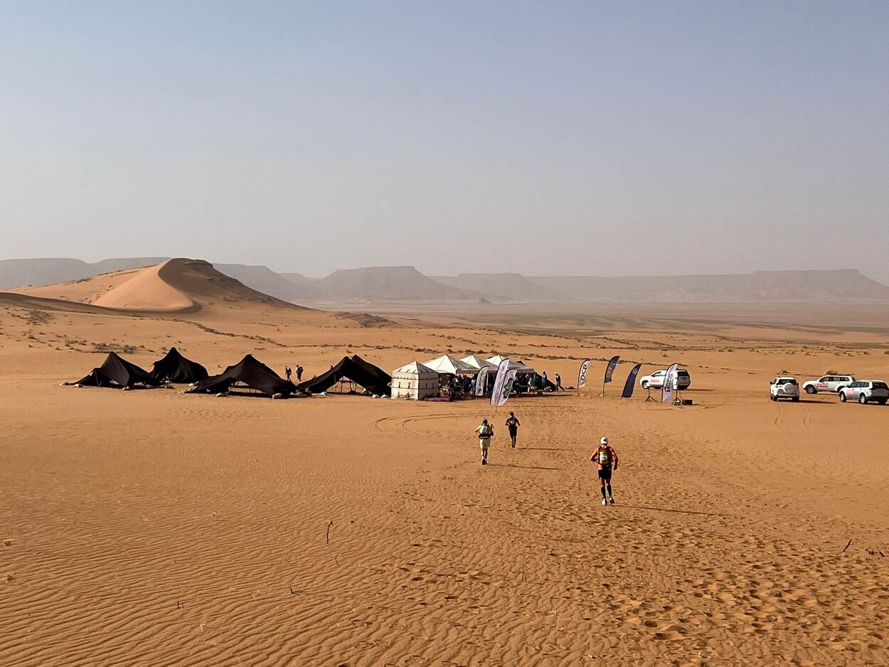 Kort daarvoor is er nog niks aan de hand. Nadat de deelnemers op de luchthaven van Ouarzazate zijn geland, een stad die vooral bekend is door de filmstudio Atlas Studios en als startpunt geldt voor vele excursies richting de Sahara, worden ze per bus richting het zanderige grensgebied gereden, zes uur verderop. “Geloof me, daar is echt helemaal niemand”, benadrukt de Nederlander. Daar wordt een bivak opgebouwd en krijgen de deelnemers twee dagen de tijd om te acclimatiseren. “Maar die tijd wordt ook gebruikt voor officiële plichtplegingen, zoals de check of je wel genoeg kilocalorieën bij je hebt en zaken als een aludeken en kompas.”