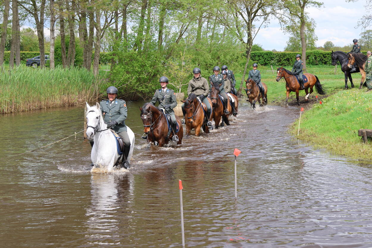 Vaste inzender Dennis Boom klikte deze foto van de oefening Northern Hussar van het Cavalerie Ere-Escorte (CEE). Die vond afgelopen zondag plaats op manege RCA in Appelscha. De training maakt deel uit van het opwerkprogramma voor Prinsjesdag in september. Hierbij worden koning Willem Alexander en koningin Máxima geescorteert van Paleis Noordeinde naar de lokale Koninklijke Schouwburg. Naast het normale oefenprogramma, zoals het rijden in formatie, moesten de escorteurs met hun paard een parcours met wat sprongen rijden en als afsluiting door de waterbak gaan. Dit om ruiter en paard te laten wennen aan andere omstandigheden.