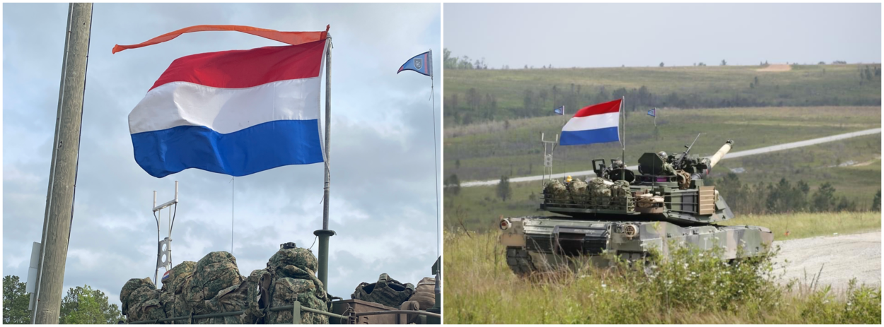 Een Nederlandse vlag (en oranje wimpel) op een Amerikaanse A1 Abramstank? Ja, zeker! Deze foto’s stuurde luitenant-kolonel Martijn in vanaf Fort Moore (Georgia) in de Verenigde Staten. Daar wordt op dit moment gestreden om de Sullivan Cup voor de beste tank- en Bradley-bemanningen. En daaraan doet een Nederlandse équipe van het Duits-Nederlandse 414 Tankbataljon mee. Het is een tweejaarlijks toernooi, georganiseerd door het US Army Manoeuvre Center of Excellence van de US Army Armor School. De Nederlandse ploeg heeft een maand training gehad op de tank. In de volgende Defensiekrant volgen ongetwijfeld meer foto’s en het resultaat, want vandaag is de laatste schietdag.