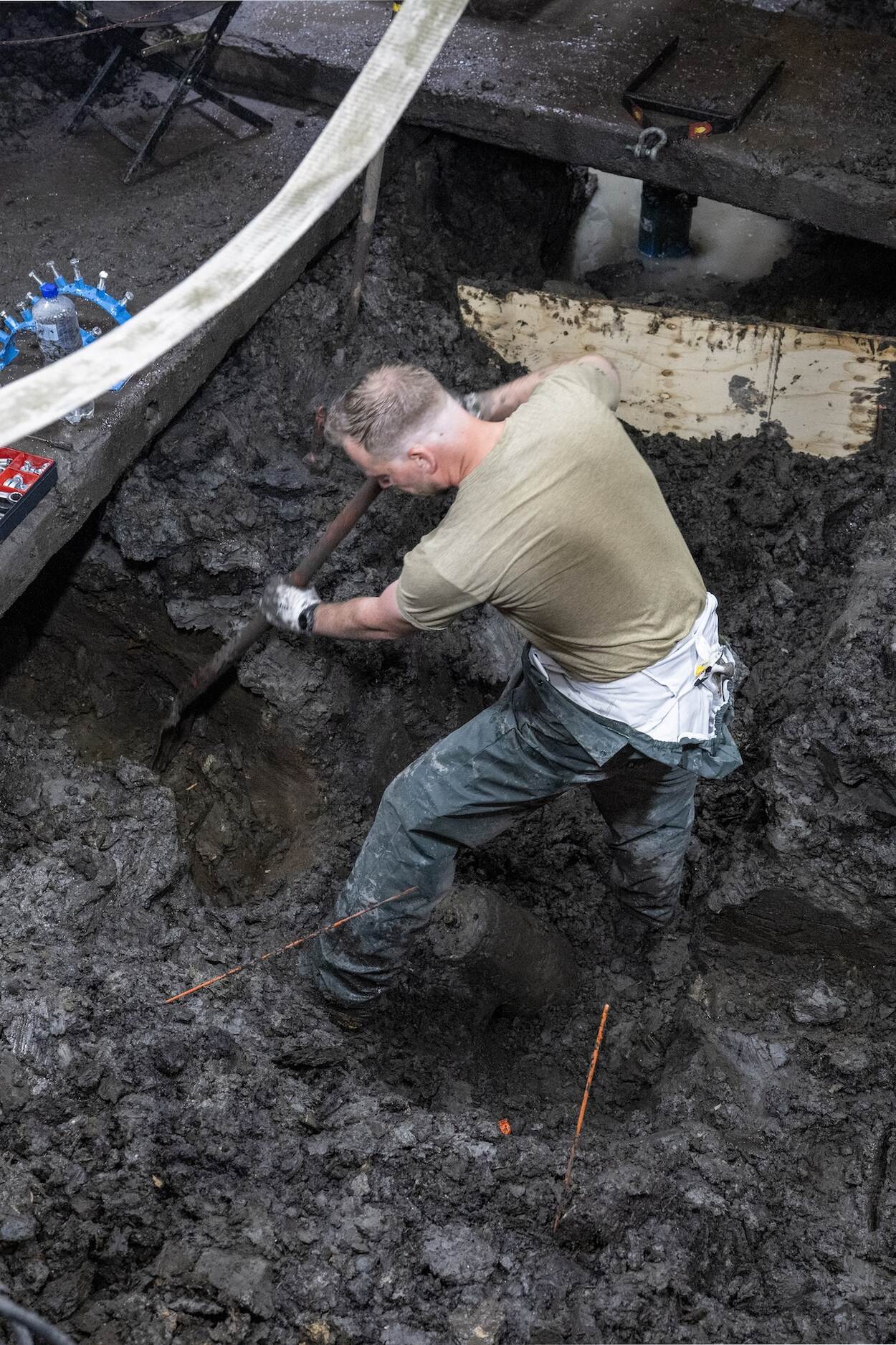 Chris en z’n collega wisten de blindganger na het uitgraven en schoonmaken snel te identificeren. Het bleek tegen de verwachting in om een 250-ponder te gaan. “Lastig aan zo’n klein explosief is dat je weinig lichaam hebt om het te fixeren… Te stabiliseren in dezelfde houding als dat ze hem aantroffen. En dat is noodzakelijk, omdat je zoveel mogelijk trilling en beweging moet voorkomen”, legt majoor Werner van Rooij van de EOD uit.