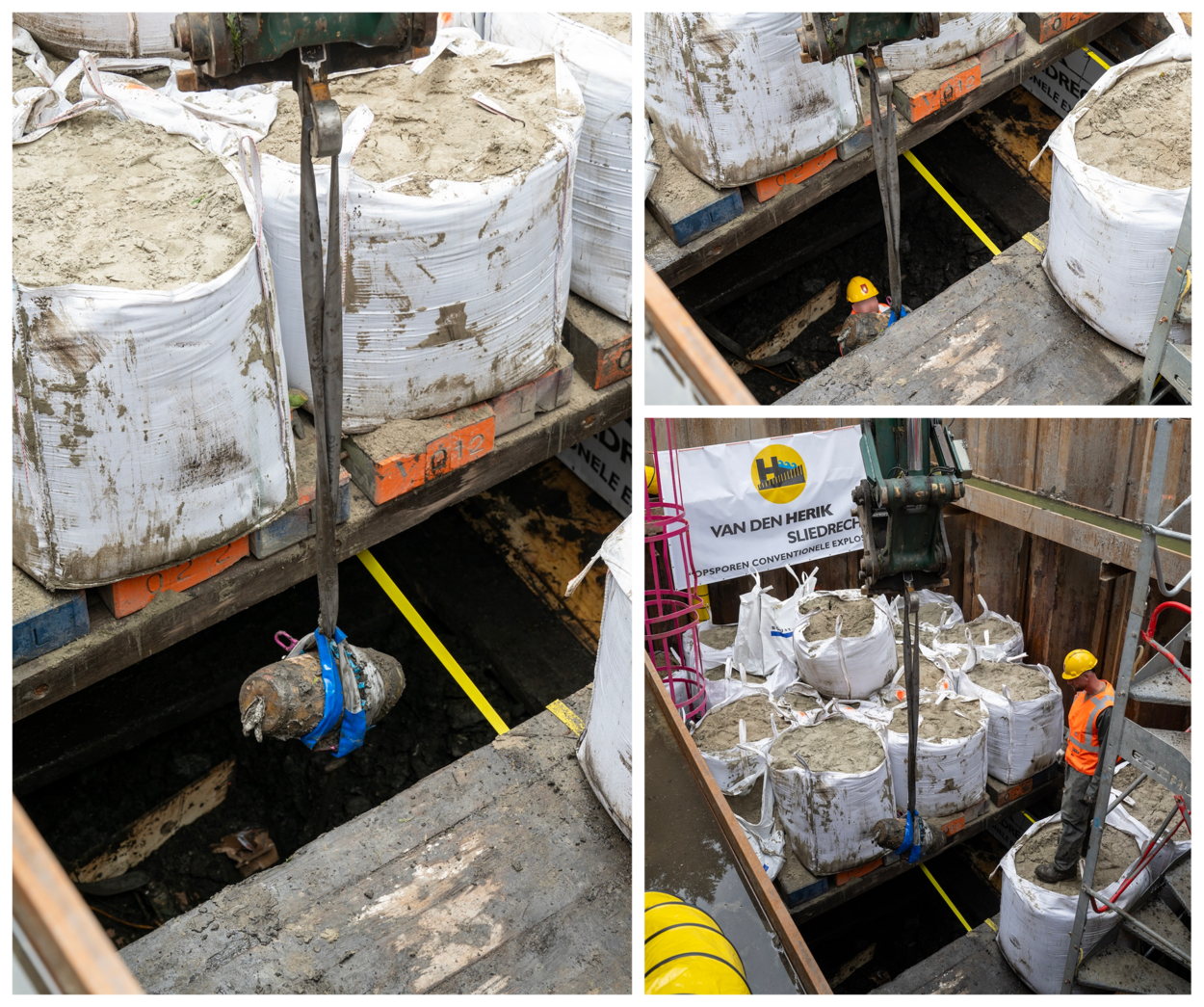 “De laatste meter heb ik met een junior ruimer en de aannemer gisteren met de hand weg geschept. Vlakbij, op ruim drie meter diepte, hebben we vorige week de restanten van de bomstaart al weggehaald. “Die was in zeer slechte staat.”