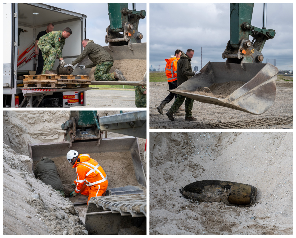 Bij aankomst op de Tweede Maasvlakte wordt het ontmantelde explosief klaargemaakt voor detonatie.