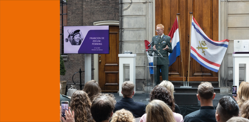 De bronzen waardering is vernoemd naar Francien de Zeeuw, die tegen het einde van de Tweede Wereldoorlog als eerste vrouwelijke militair in dienst trad bij de Marine Vrouwenafdeling (MARVA). In de oorlog regelde zij als actief verzetsstrijder onder meer onderduikadressen, luisterde telefoongesprekken van Duitsers af, verspreidde rantsoenenkaarten onder onderduikers en smokkelde valse identiteitsbewijzen.”