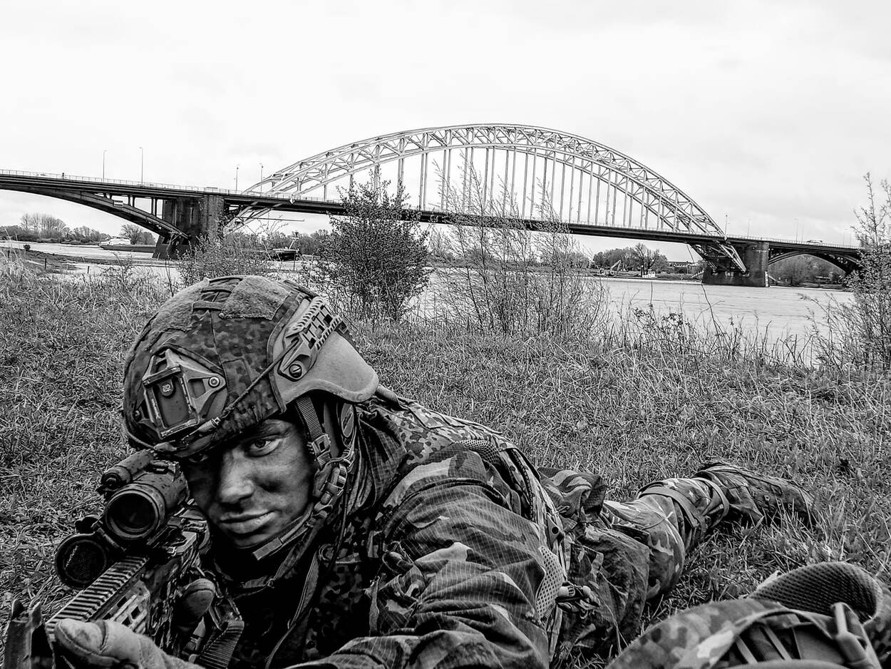 Jantine van Hoorn werkt dan wel niet bij Defensie, ze is wel bovenmatig geïnteresseerd in de krijgsmacht en waardeert en respecteert het werk enorm. “Ga er maar aan staan, zeker in deze verdeelde maatschappij.” Onlangs kwam ze terecht bij een landmachtoefening in Nijmegen, waar ze deze foto heeft gemaakt. “Een bucketlistmoment. Ik vond het beeld zo mooi dat ik hem op canvas heb laten afdrukken voor thuis.”