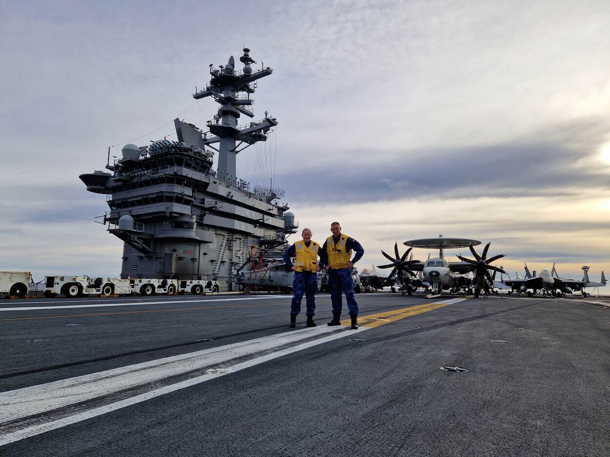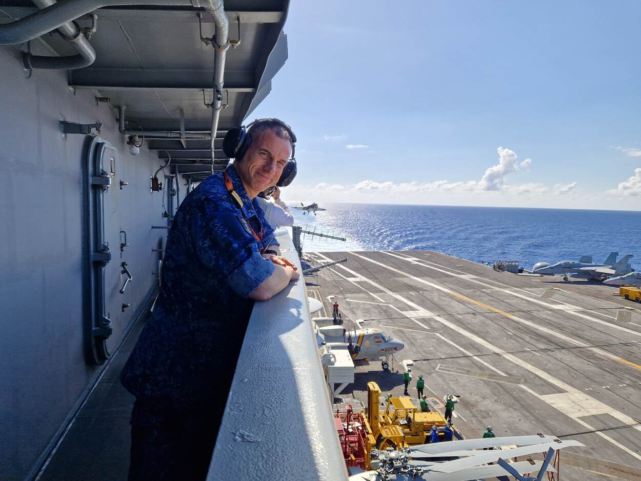 Aan boord zijn de Nederlanders omringd door bijna vijfduizend Amerikaanse marinecollega’s. Ter vergelijking: de Nederlandse marine heeft in totaal circa 7.400 militairen in dienst. “En dan is het schip nog niet eens volledig gevuld.” Hopman-Calis omschrijft haar tijd aan boord als “heel leuk en erg interessant.” Overste Zijlstra doet daar een schepje bovenop: “Wat is het hier gigantisch; het is overweldigend.”