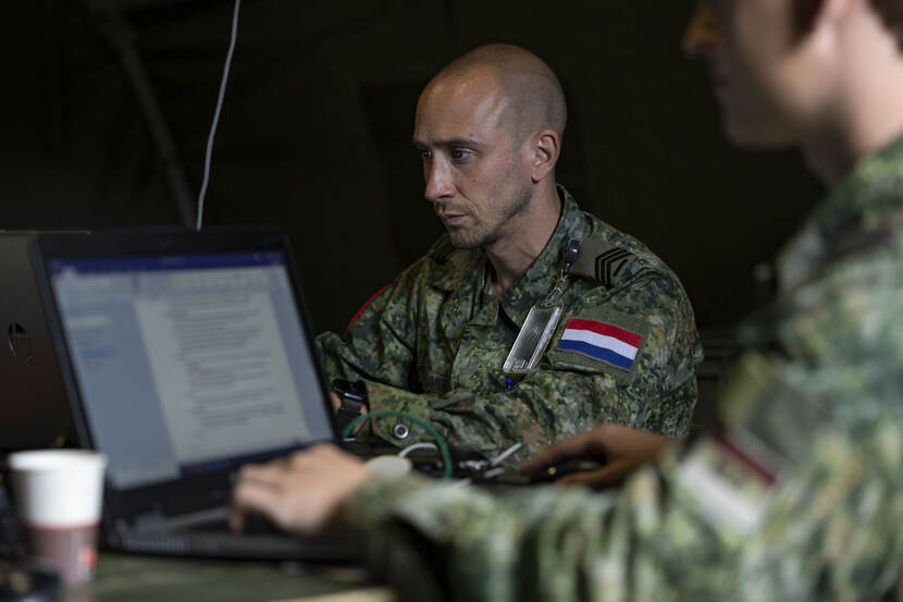 Welk scenario het ook was, materieelcoördinator sergeant-majoor Martijn heeft er in ieder geval een mooie week op zitten. “Het was een ervaring an sich”, benadrukt hij. “Weer lekker met de hele club buitenslapen, in een tent”, lacht hij. “Wat mij betreft mag dit wel vaker in het jaar worden gedaan.” Een welkome bijvangst was het contact met collega’s die hij normaal gesproken weinig ziet. “Maar waar je in het grote plaatje wel mee samenwerkt. Weer met elkaar optrekken versterkt de band.”
