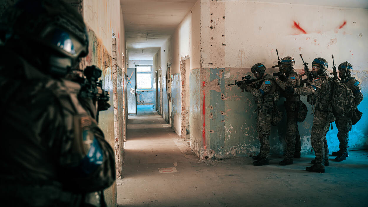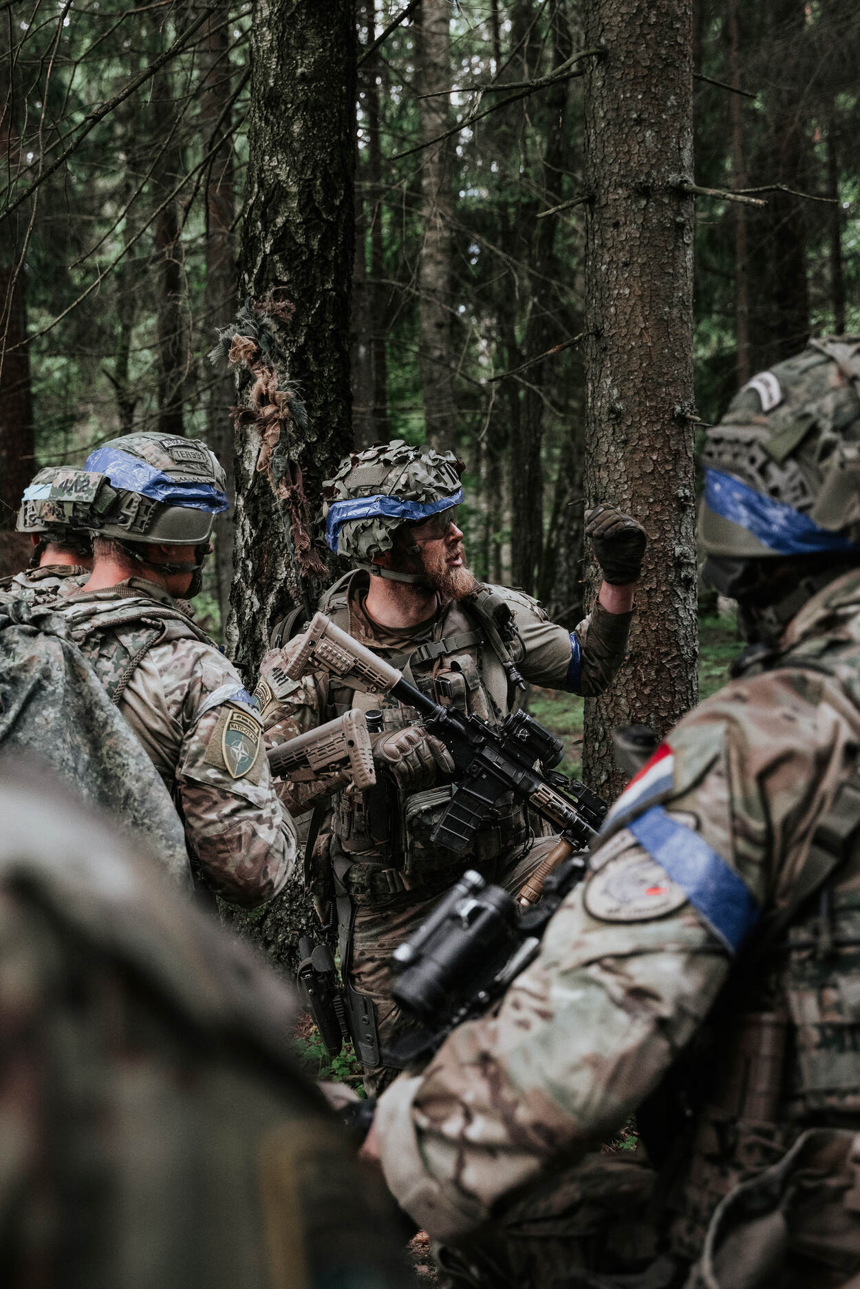 NAVO-troepen die tijdelijk zijn omgedoopt tot de 'blue forces' patrouilleren in de bossen van Litouwen. Ze kijken aandachtig om zich heen, speurend naar de vijandelijke 'red forces'. Afgelopen week vond hier Iron Wolf plaats, waarbij verschillende facetten van het militair optreden aan bod kwamen. Met deze grootste NAVO-oefening van de missie in Litouwen laten het gastland en de bondgenoten zien dat ze dit land kunnen verdedigen en potentiële dreigingen afslaan.