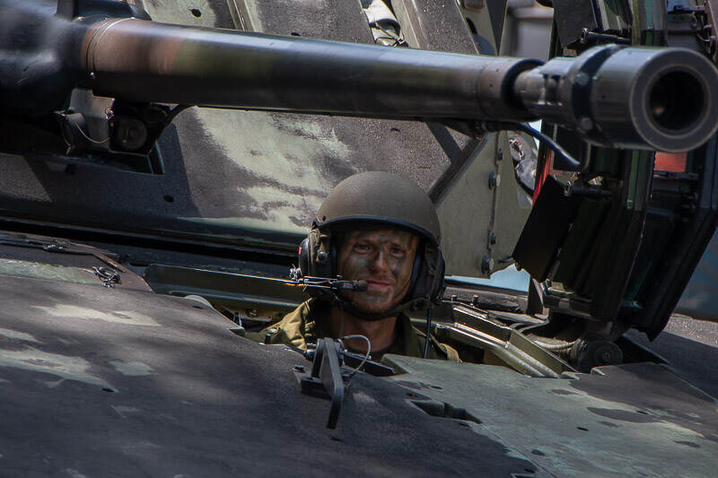 Tussen de bezoekers op het Malieveld stond John Mooy, die zijn camera ook vol overgave de vrije loop liet. Terugkijkend vond hij deze foto van een CV90 en chauffeur het mooist. “Het meest sprekend”, vult hij aan. “Gezeten te midden van het staal, een vrolijk menselijk gezicht. Iemand die er zin in heeft”, omschrijft John zijn prent.