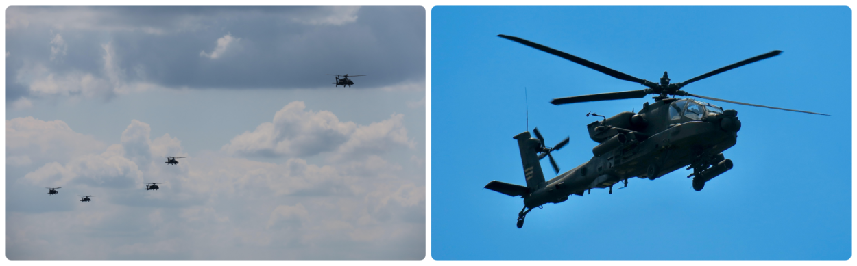 Onze Mehdi, nog net geen 16 jaar jong, is trouwens helemaal thuis in de luchtmachttaal. “Ik hoorde dat er wat helikopters van RNLAF terug in Nederland zijn, dus ik verwacht dat ik die binnenkort ook weer volop kan fotograferen op de GLV5”, meldt ze. Voordat u denkt, die zoeken we op: RNLAF is de internationale afkorting voor de Koninklijke Luchtmacht (Royal Netherlands Air Force). GLV5 staat voor Gebied Laag Vliegen 5 en dat is bij Oirschot, in Noord-Brabant. Op 19 juni ‘pakte’ Mehdi deze vijf Apaches mee die vanaf Eindhoven Airport vertrokken. “Een mooi gezicht zo, met die wolken op de achtergrond. Ook kon ik nog wat scherpere foto’s maken toen ze overvlogen.”