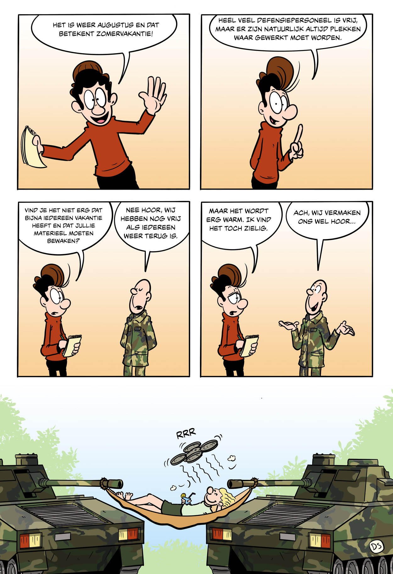 Disclaimer: Deze strip is niet bedoeld als uiting of vertaling van defensiebeleid. Het zijn komische interpraties van de werkelijkheid, op persoonlijke titel van de tekenaar.
