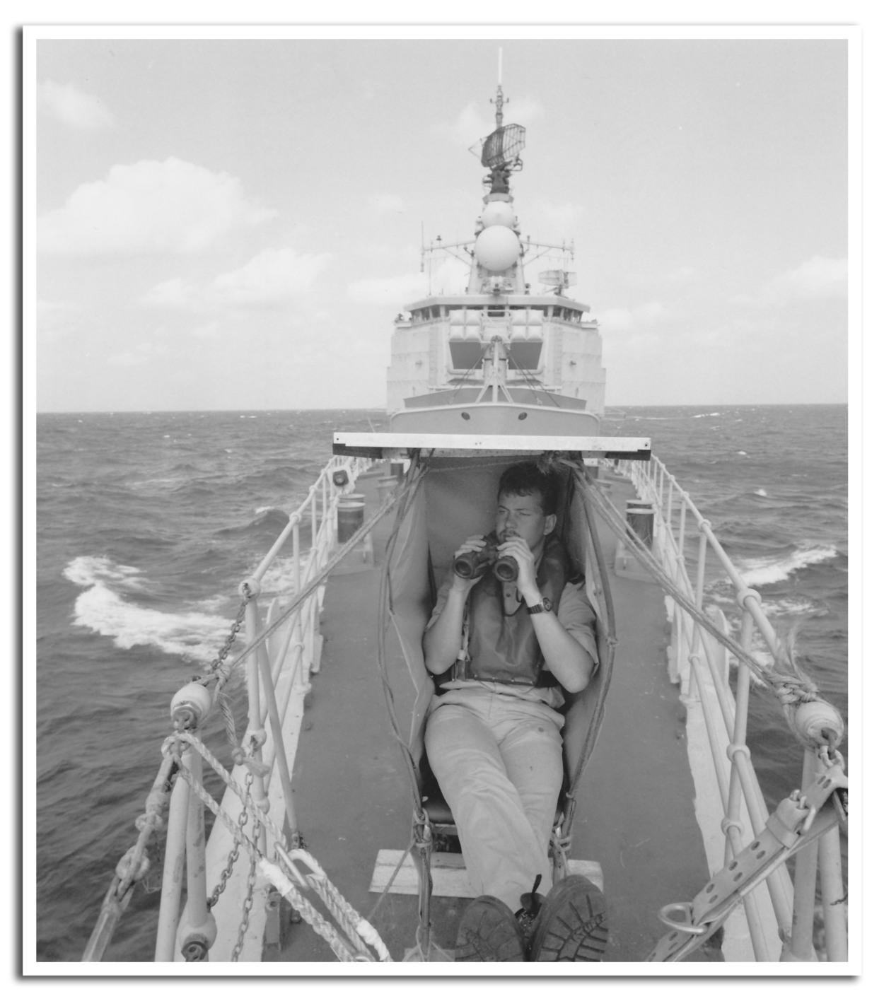 De Iraakse dictator Hoessein heeft ondertussen al een aantal keren laten zien dat hij niet terugdeinst voor de inzet van chemische wapens. Het is dus ‘gas, gas, gas’ en ‘hoppen, hoppen, soppen’ in Den Helder. Uiteindelijk worden de oude gasmaskers die dan in gebruik zijn omgeruild voor exemplaren waar ook mee gedronken kan worden. Niet zo gek in een omgeving waar de temperaturen aardig kunnen oplopen.
