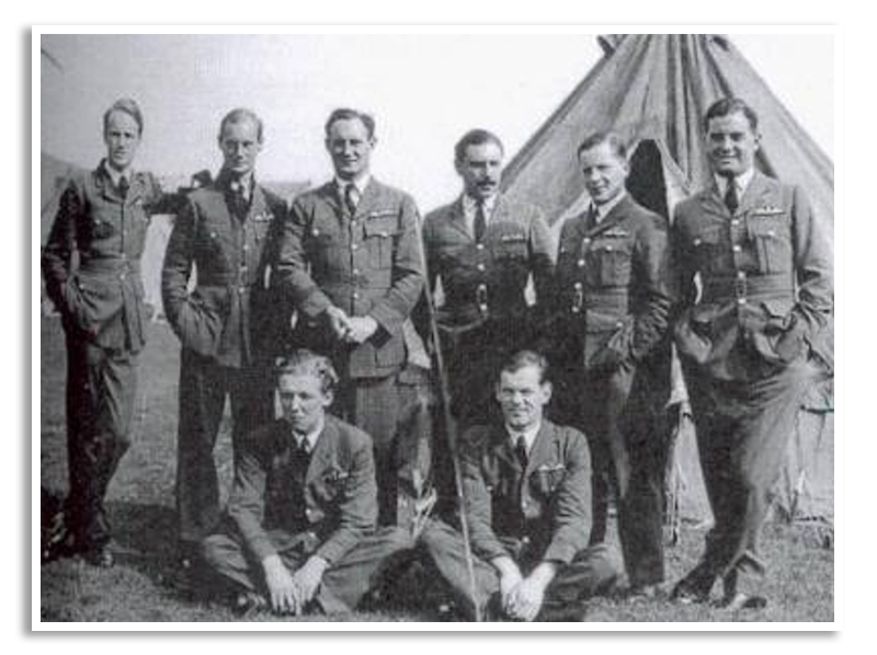 Het squadron van Montagu Hulton-Harrop, links staand, twee dagen voor het fatale incident. Foto Foto Imperial Warmuseum.