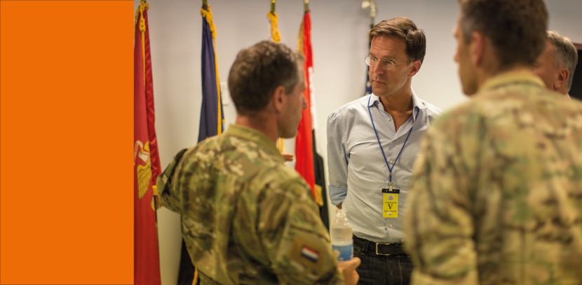 Toen nog minister-president Rutte op werkbezoek bij Nederlandse militairen in Irak. Foto: Defensie.