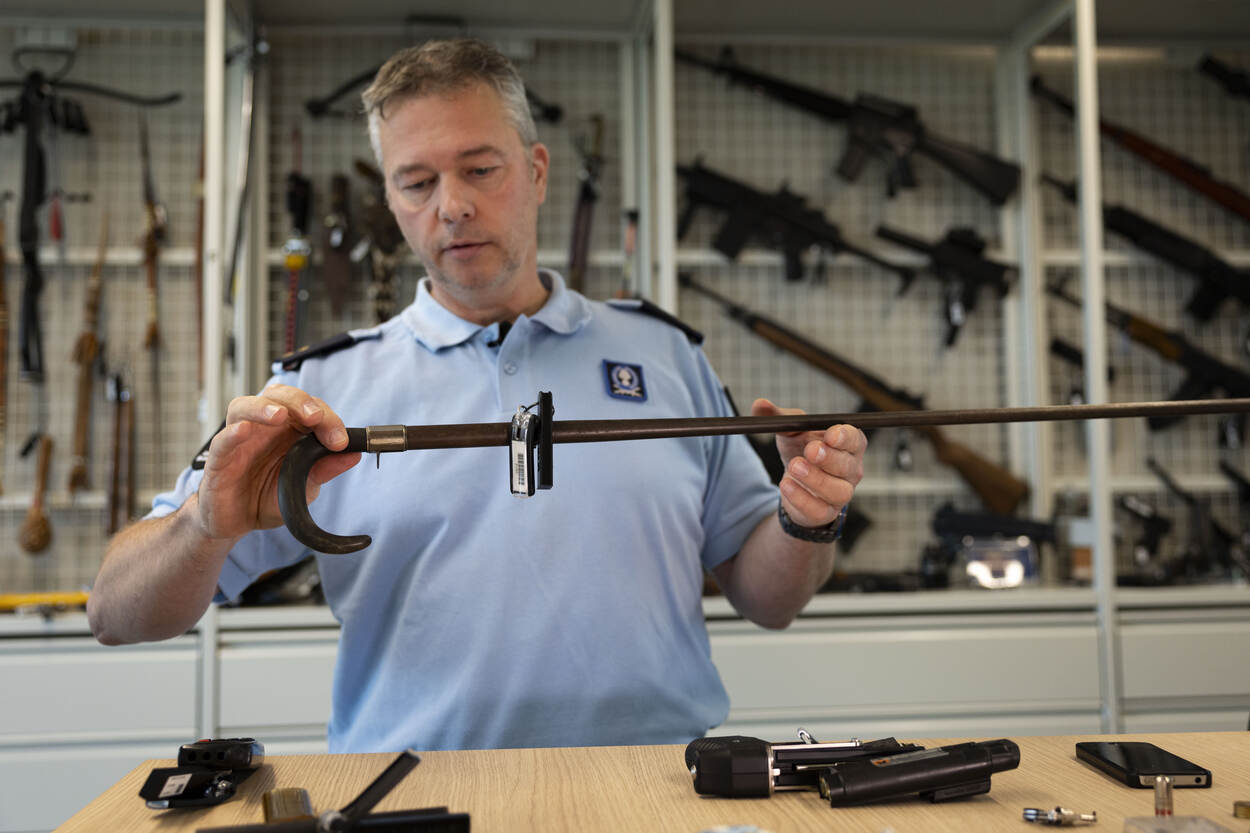 Een iPhone die een stroomstootwapen blijkt; een wandelstok die bij nadere inspectie een loop en een trekker heeft; een 3D-geprinte boksbeugel. In de wapenreferentiecollectie van de Koninklijke Marechaussee bevinden zich de meest uiteenlopende (vuur)wapens. Ooit in beslag genomen, nu gebruikt als lesmateriaal, maar ook voor rechtszaken. Luitenant John van Doormolen van het bureau Wapens, Munitie en Explosieven licht er een paar bijzondere objecten uit.