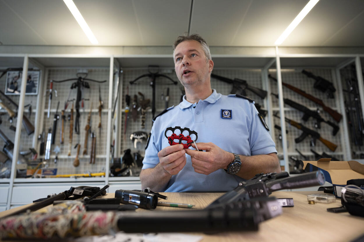 Neem het setje speelkaarten dat Van Doormolen laat zien. Het enige dat - op het eerste gezicht - anders lijkt is het materiaal. Ze zijn van metaal waardoor je iemand behoorlijk kunt verwonden. Ter vergelijking pakt de luitenant een werpster uit de kast erbij. “Als dit een gevaarlijk wapen is, dan zijn deze ‘speelkaarten’ dat ook.” Hij haalt z’n vinger langs de scherpe randen van de metalen kaarten. “Daar maakt de wet wel onderscheid in.”
