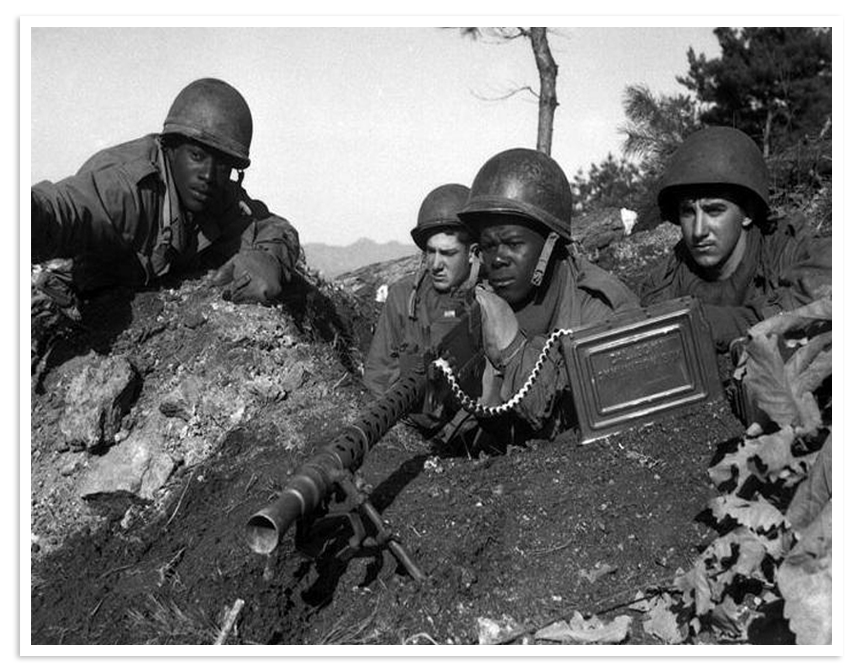 Troepen van de VN in gevecht met Noord-Koreaanse troepen aan de rand van Seoel in 1950. (Army photo)