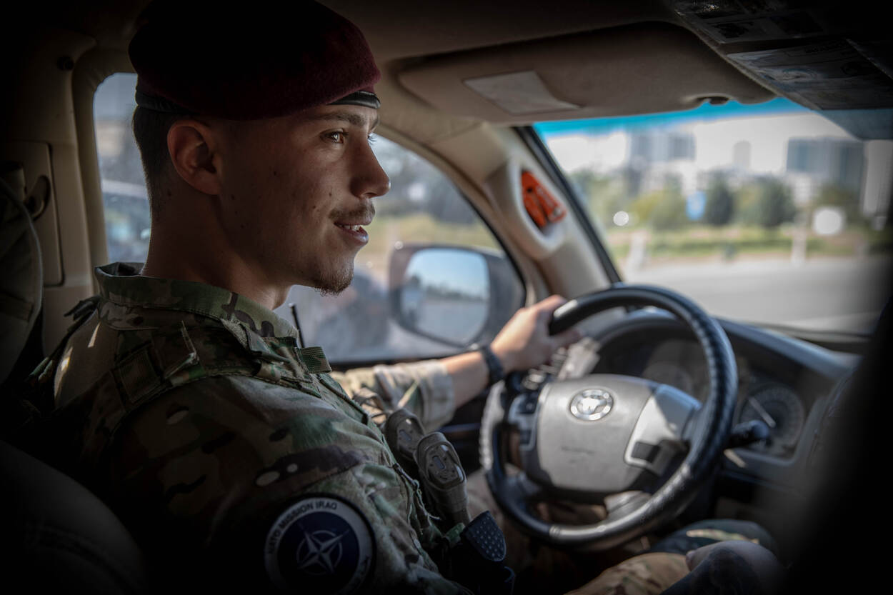 Bart en zijn collega’s van 11 Luchtmobiele Brigade zijn een onmisbare schakel binnen NMI. Als Force Protection zorgen zij dat NAVO-adviseurs veilig van locatie A naar B komen. Dat is zo gemakkelijk nog niet. Zo is het verkeer op zijn zachtst uitgedrukt hectisch te noemen. “We komen de gekste dingen tegen. Mensen die zomaar de snelweg oversteken, vrachtwagens die ons links en rechts inhalen en over de weg slingeren”, zegt Bart.