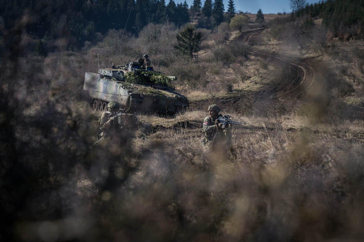 Ook Tsjechische eenheden nemen deel aan de oefening. Dat mes snijdt uiteraard aan twee kanten, beide partijen kunnen oefenen en van elkaar leren. Tegelijkertijd herinnert het de Nederlandse eenheden ook aan de toegenomen spanningen in de wereld. “Hoe verder je naar het oosten gaat, hoe groter het gevoel van urgentie is”, merkt Lenoir op. “Dat voel je bij onze Tsjechische partners, en het is goed voor onze eenheden om dat te ervaren. Bovendien tonen we met deze samenwerking ook de verbondenheid aan een NAVO-partner.”