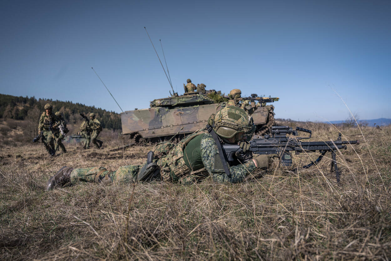 Een ander doel is de manschappen voorbereiden op uitzendingen, zoals voor rotaties van de NATO Multinational Battle Group Lithuania, voorheen NATO Enhanced Forward Presence Battle Group. “Wij zijn daar hofleverancier voor”, legt Lenoir uit. “Daarom zorgen wij ervoor dat zowel combat-, combat support- en combat service support-eenheden gereed zijn voor die taak.” Dat betekent dat ruim 1.500 militairen aanwezig zijn in Tsjechië, op het uitgestrekte militair oefenterrein Hradiště, vlak over de grens bij Duitsland.