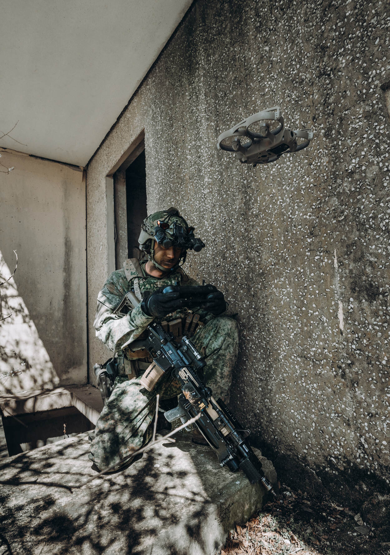 De ontwikkelingen in oorlogsvoering gaan razendsnel. De oorlog in Oekraïne laat dat dagelijks zien. Kijk bijvoorbeeld naar de inzet van drones en counterdrones. Maar ook naar de technologie die zich in hoog tempo ontwikkelt. Die realiteit vraagt van militairen om slimmer te vechten en de tegenstander steeds een stap voor te blijven. “Daarom oefenen we hier concepten die morgen al inzetbaar zijn. Niet als proefballonnetjes, maar als realistische oplossingen”, zegt Kooij dan ook.