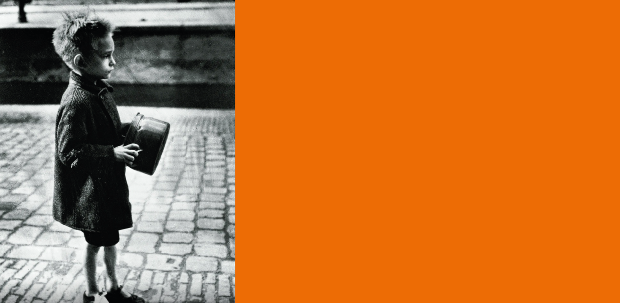 Oude foto van een broodmager jongetje