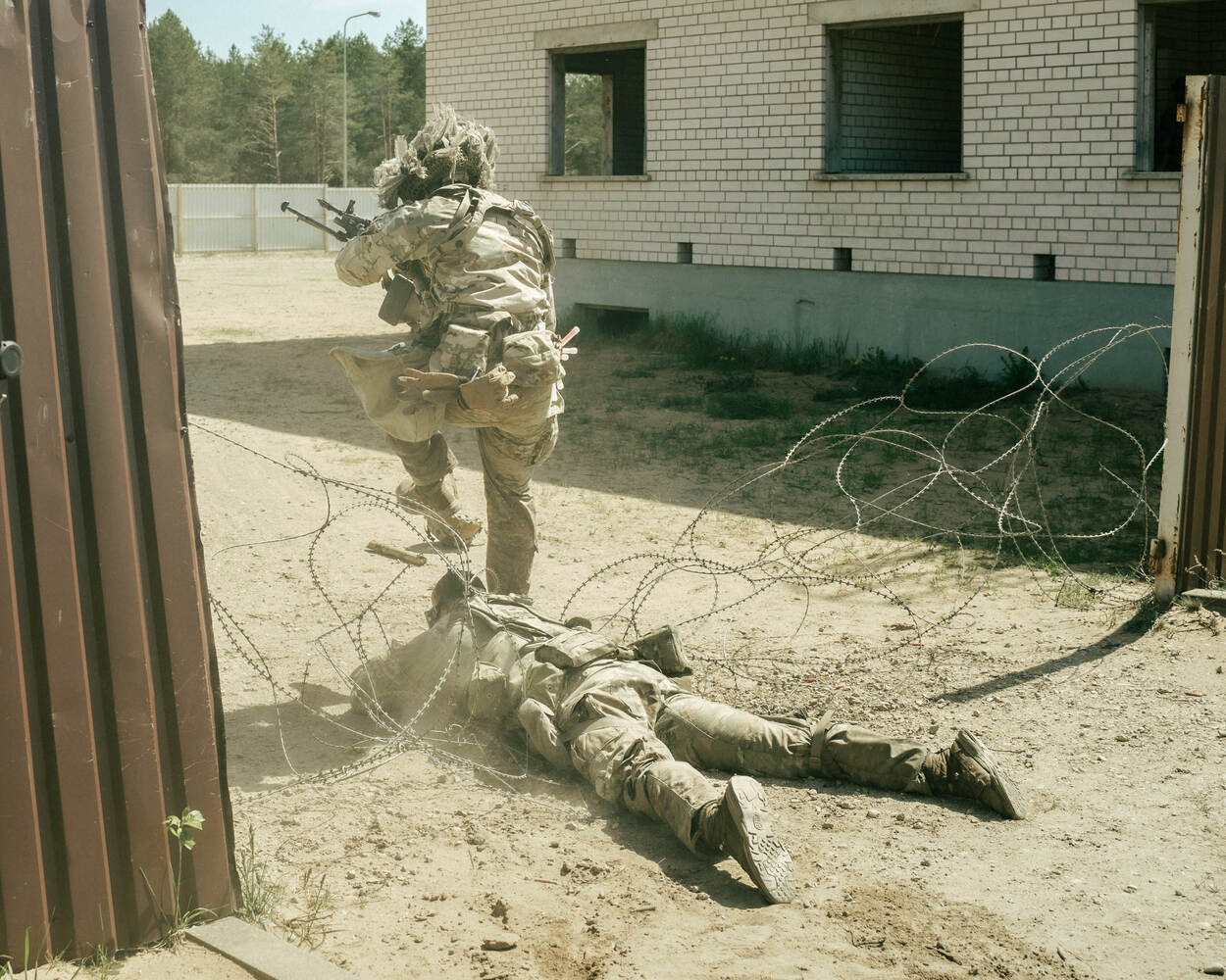 De al wat oudere volgers van het wielrennen herinneren het zich als de dag van gisteren: Thomas ‘Johnny’ Hoogerland die tijdens de Tour de France van 2011 het prikkeldraad werd ingereden. Die beelden kwamen even terug bij het zien van deze foto, waarbij een parachutist van de Amerikaanse landmacht (2e Bataljon, 503 Infanterieregiment, 173 Luchtlandingsbrigade) over een collega springt, die op de concertina’s ligt. De actie had plaats tijdens oefening Swift Response in Litouwen. Gelukkig had deze ‘prikkeldraadligger’, zoals een landelijke ochtendkrant ongetwijfeld zou koppen, geen 33 hechtingen nodig. (Foto: US Army, sergeant Jose Lora)
