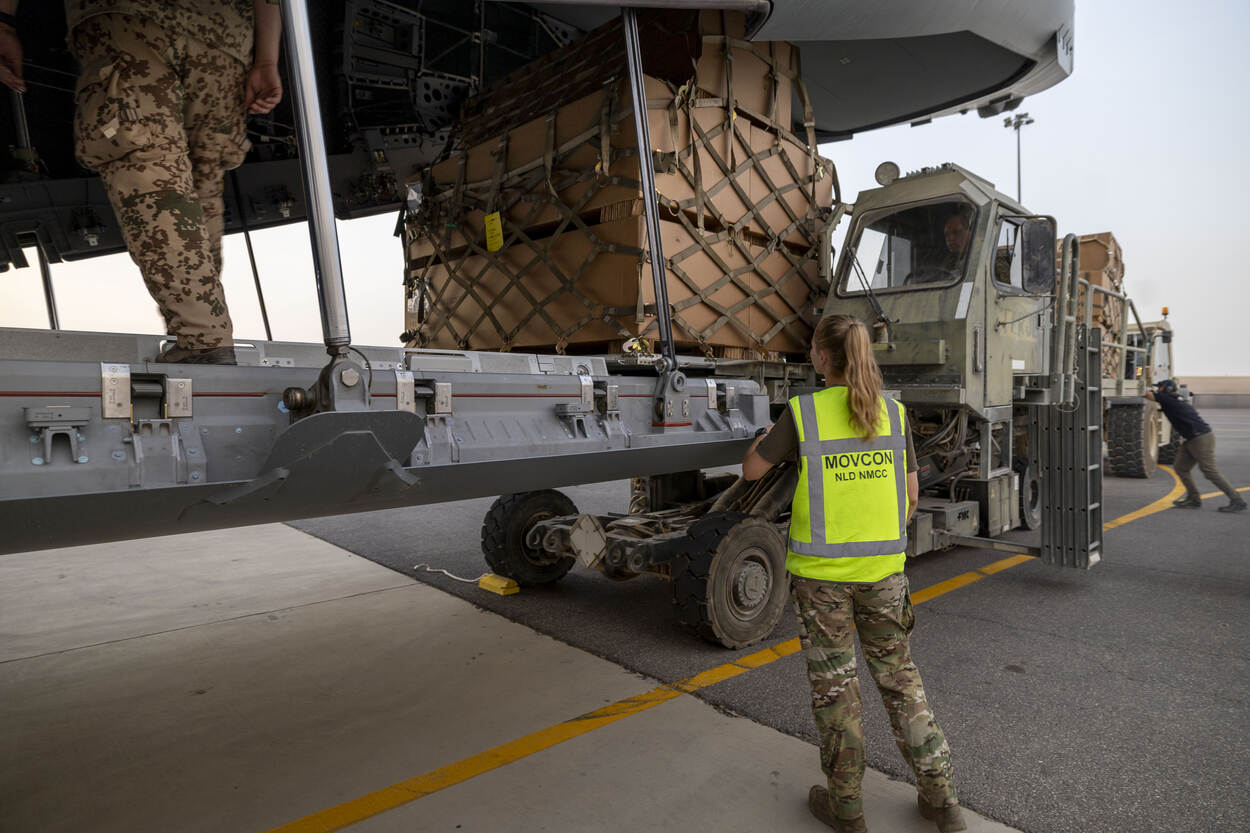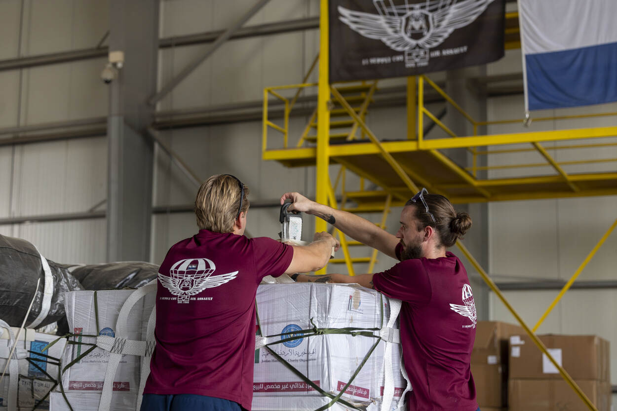 Vrijdag 8 augustus is de eerste dropping van zestien goed en veilig ingepakte pallets met noodhulp. Daarin zitten hulpgoederen die door andere landen zijn aangeleverd. In totaal zijn er sindsdien zo’n 130 bundels gecontroleerd uit het vliegtuig ‘gegooid’.