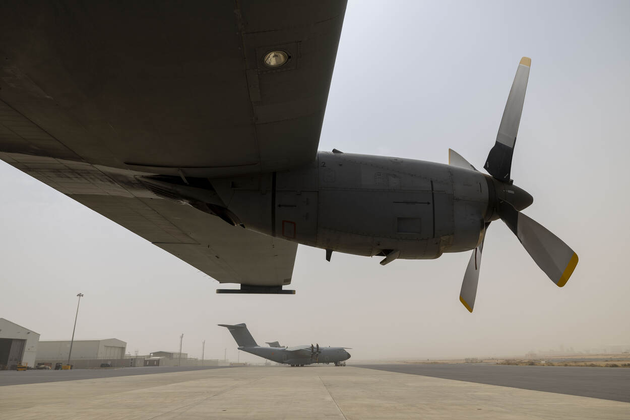 Meerdere landen doen meer aan de voedseldroppings boven Gaza. Hier staat een Nederlandse C-130, terwijl op de achtergrond een A400M transporttoestel van de Duitse luchtmacht opstijgt.