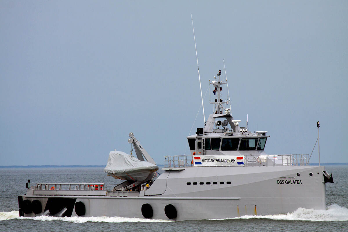 Hij presenteert een foto van DSS Galatea. “Dit semi-marineschip is onder meer voor het beschermen van onze Noordzee-infrastructuur en het escorteren en monitoren van niet-NAVO schepen. De Galatea is voor twee jaar gehuurd en wordt teruggegeven zodra de twee nieuwe ondersteuningsvaartuigen zijn geleverd”, vermeldt hij. Die tekst klinkt wel heel bekend in de oren! De onbezoldigd correspondent doet gelukkig keurig aan bronvermelding: hij heeft het van ons eigen Defensie.nl geplukt.