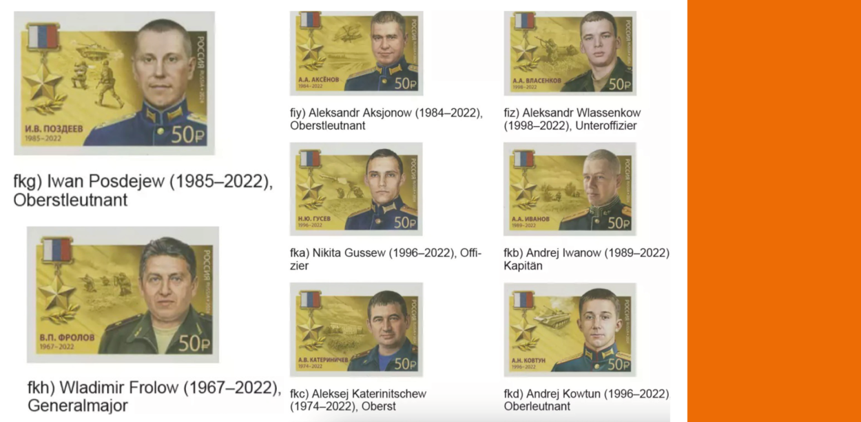 Dat Rusland in de oorlog met Oekraïne zware verliezen lijdt, is in het Westen algemeen bekend. In eigen land ligt dat feit veel gevoeliger; des te opmerkelijker zijn de series postzegels die Rusland uitgeeft met ‘helden van de natie’. Het betreft in deze serie militairen die zijn omgekomen in 2022.