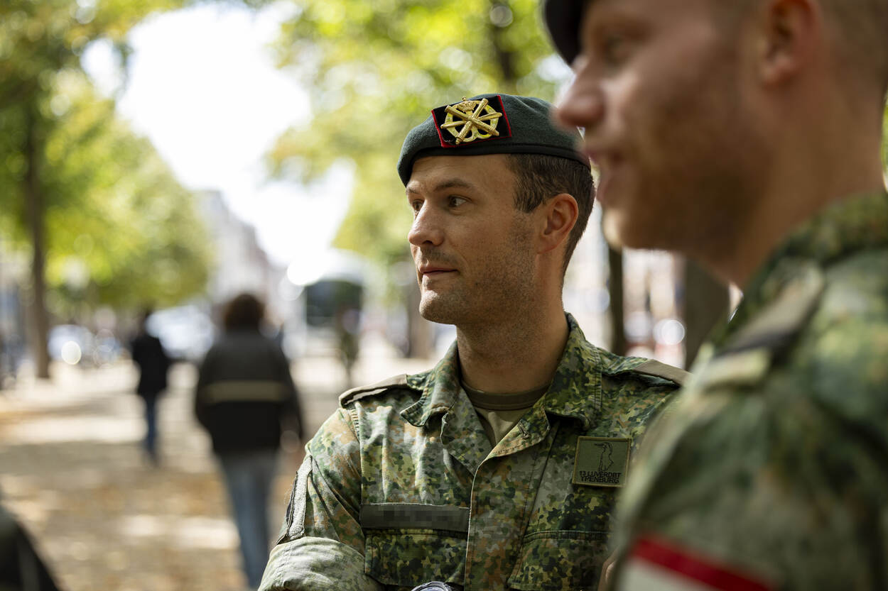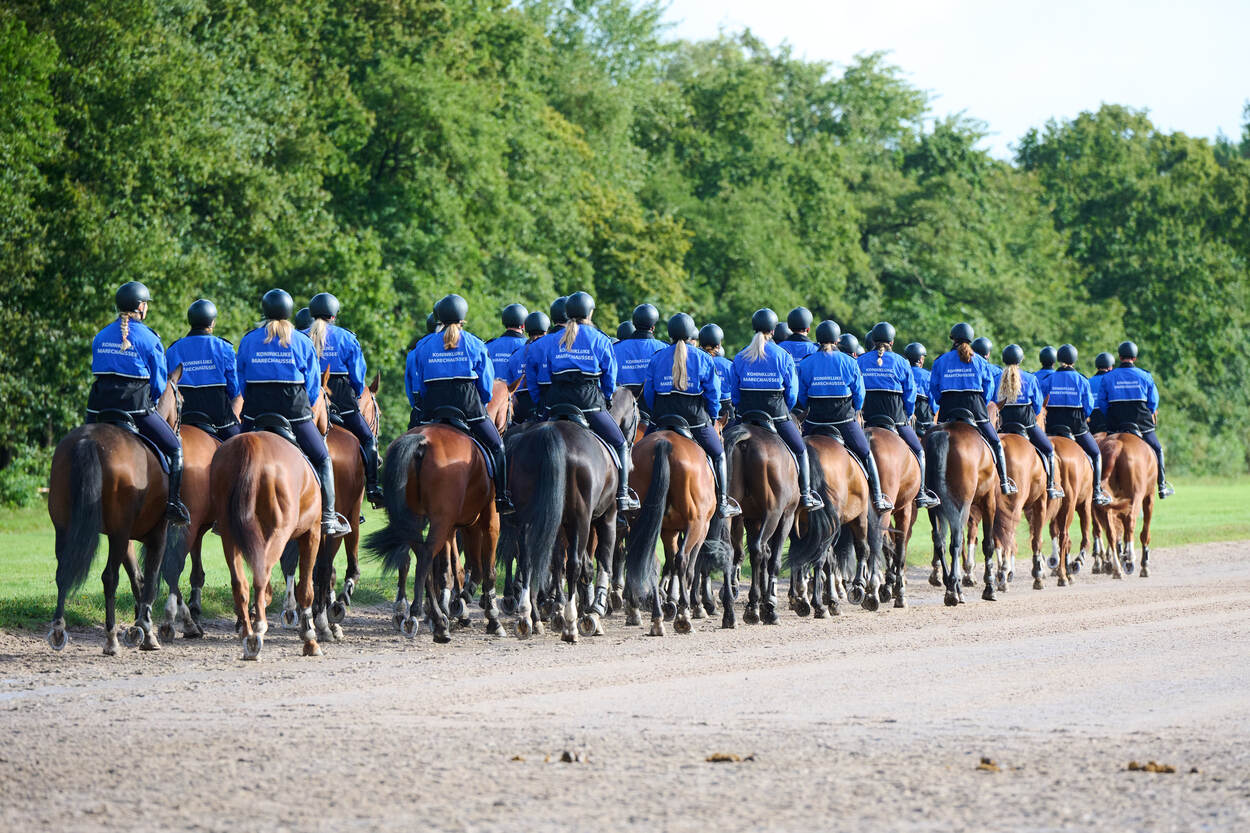Tweede luitenant Stan en opperwachtmeester Youri stappen uit de bus, wandelen een stukje en kijken om zich heen. Samen met enkele tientallen collega’s staan ze midden in Den Haag, op het Lange Voorhout. De verkleurde bladeren op de grond verraden dat de meteorologische herfst inmiddels is ingezet. Op de brede laan wemelt het deze dag van scholieren en toeristen, maar over enkele dagen treft het duo een heel ander decor. Dan is dit stukje van de stad onderdeel van de route die de koninklijke stoet aflegt tussen Paleis Noordeinde en de Koninklijke Schouwburg.