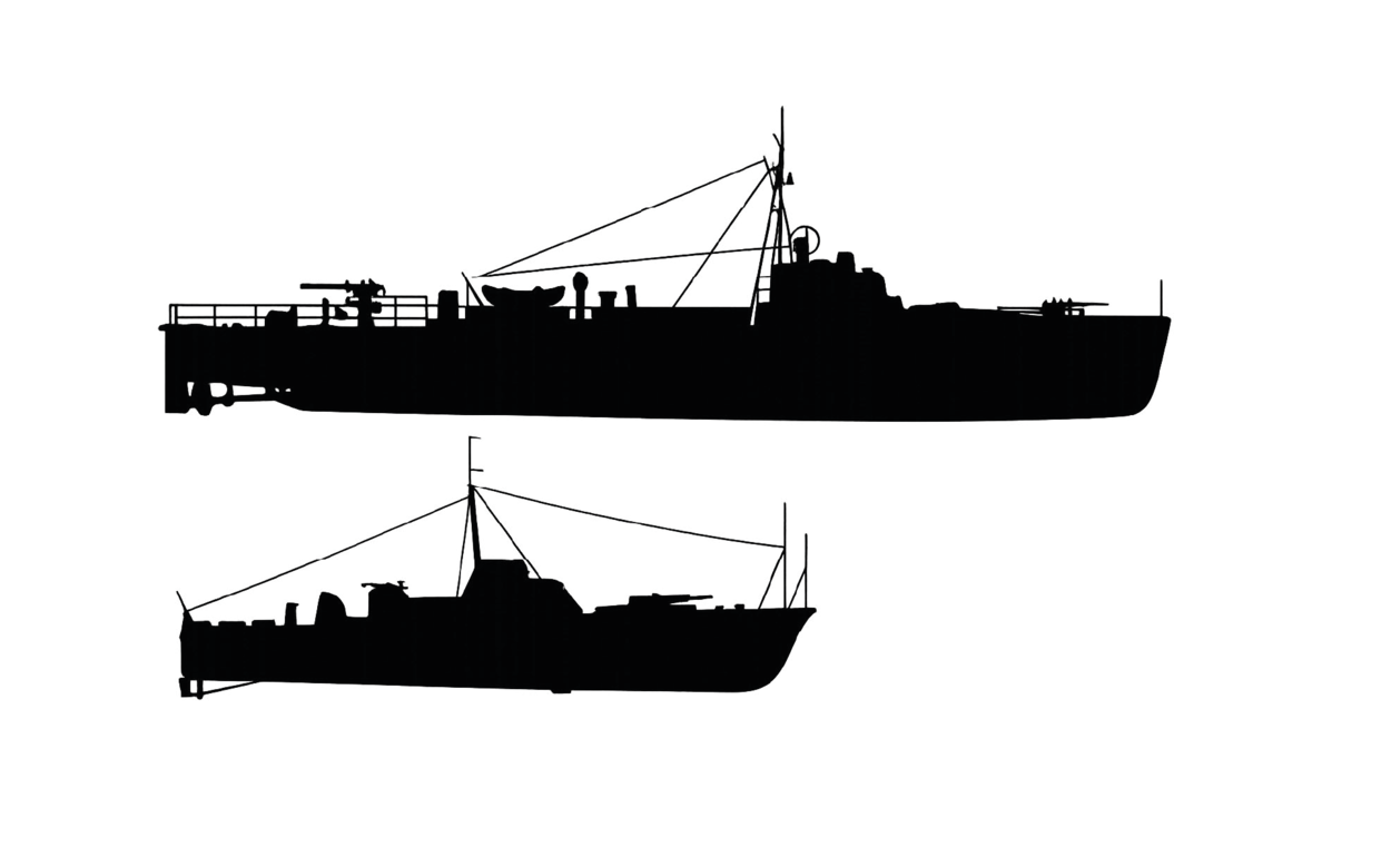 Een vergelijking tussen de Duitse S-boot (boven) en een Engelse Vosper boot.