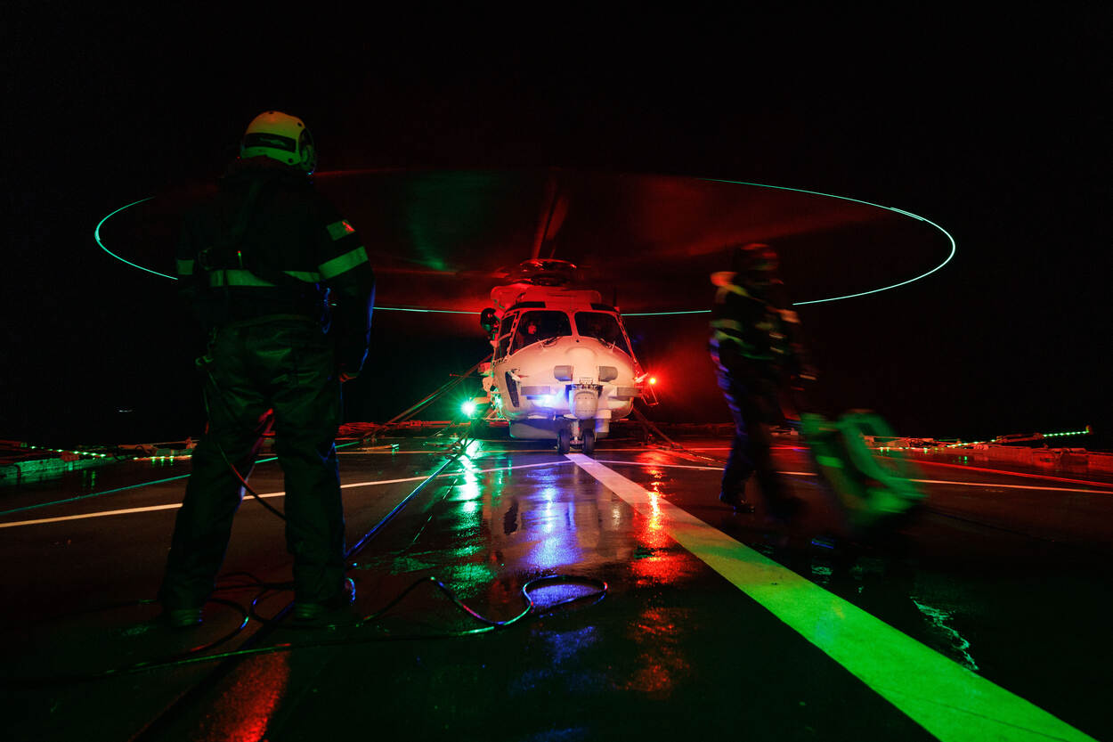Een NH90 tijdens nachtelijke operaties.