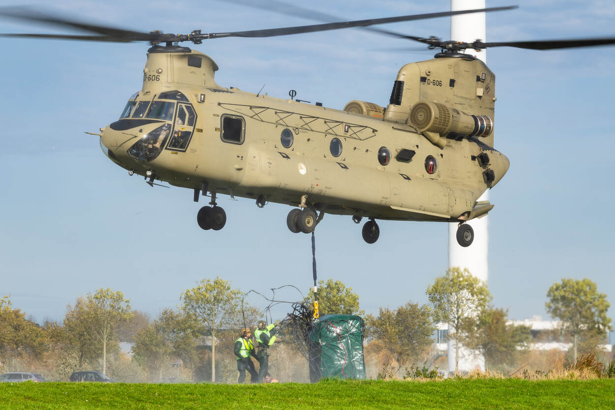 Aan de boorden van het Amsterdam-Rijnkanaal, ter hoogte van het Utrechtse Schalkwijk, cirkelt op de eerste woensdag van november plots een helikopter boven flink wat hectaren weiland. Het blijkt te gaan om een transporthelikopter van Defensie. Deze Chinook levert luchtsteun en pendelt twee dagen lang tussen het ‘pick-up point’ en de ‘drop-off locatie’ met zogenaamde ‘big bags’ en ‘block bags’. Dit vanwege een doorgebroken dijk. Die is bezweken door aanhoudend noodweer met veel neerslag. Snelle actie vereist dus.