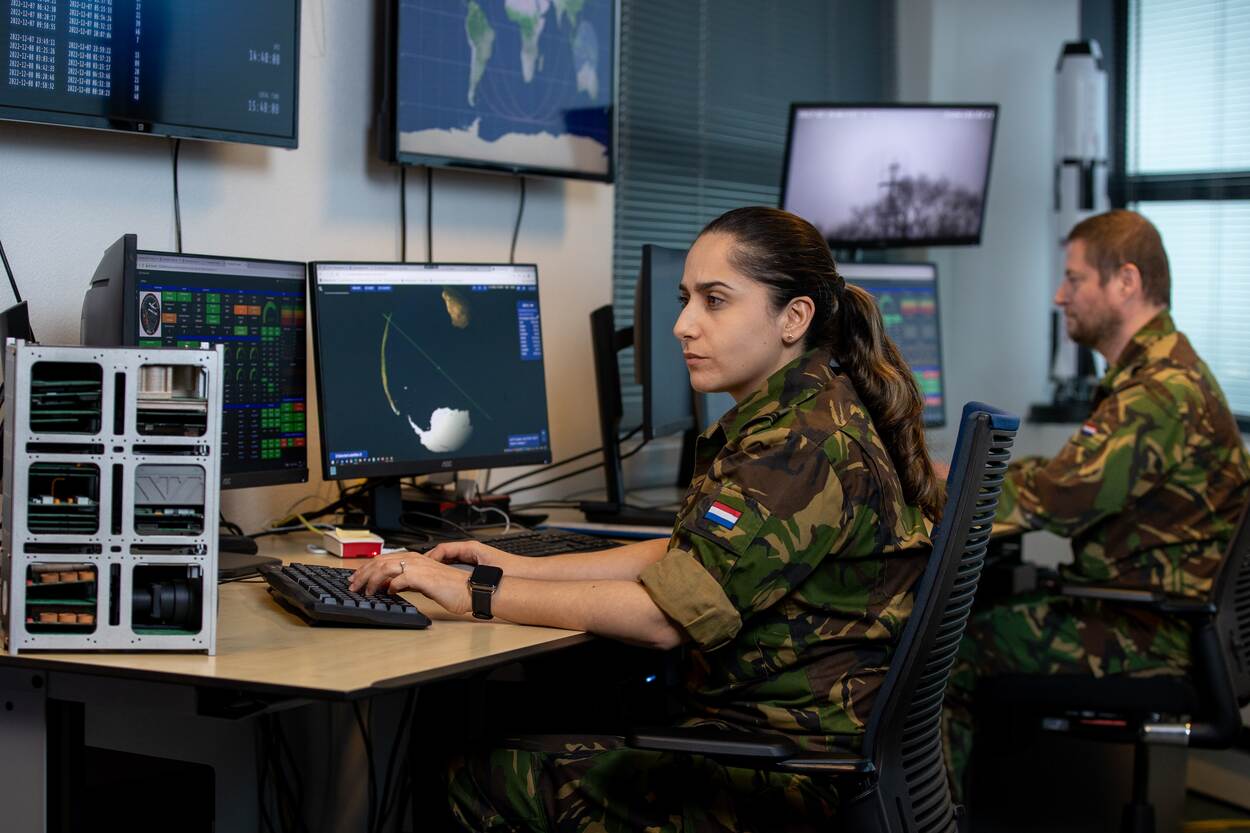 Het is dus logisch dat er vol ingezet wordt op groei op dit gebied. “We hebben in juni onze eerste operationele satelliet in gebruik genomen en komend jaar volgen er meer. Daarnaast groeien we, en dat moet ook, qua personeel. Toen ik in 2018 begon waren we met z’n vijven en inmiddels met ongeveer twintig. Veruit onvoldoende trouwens voor de opdracht die voor ons ligt. We hebben momenteel wel werk voor honderd man. De volgende lancering is kort voor of na de jaarwisseling, daar kijken we naar uit. Daarnaast werken we hard aan nieuwe plannen en het ontwikkelen van nieuwe satellieten met de Nederlandse industrie. Zo kunnen we de groei die Defensie inzet ook in het ruimtedomein realiseren.”