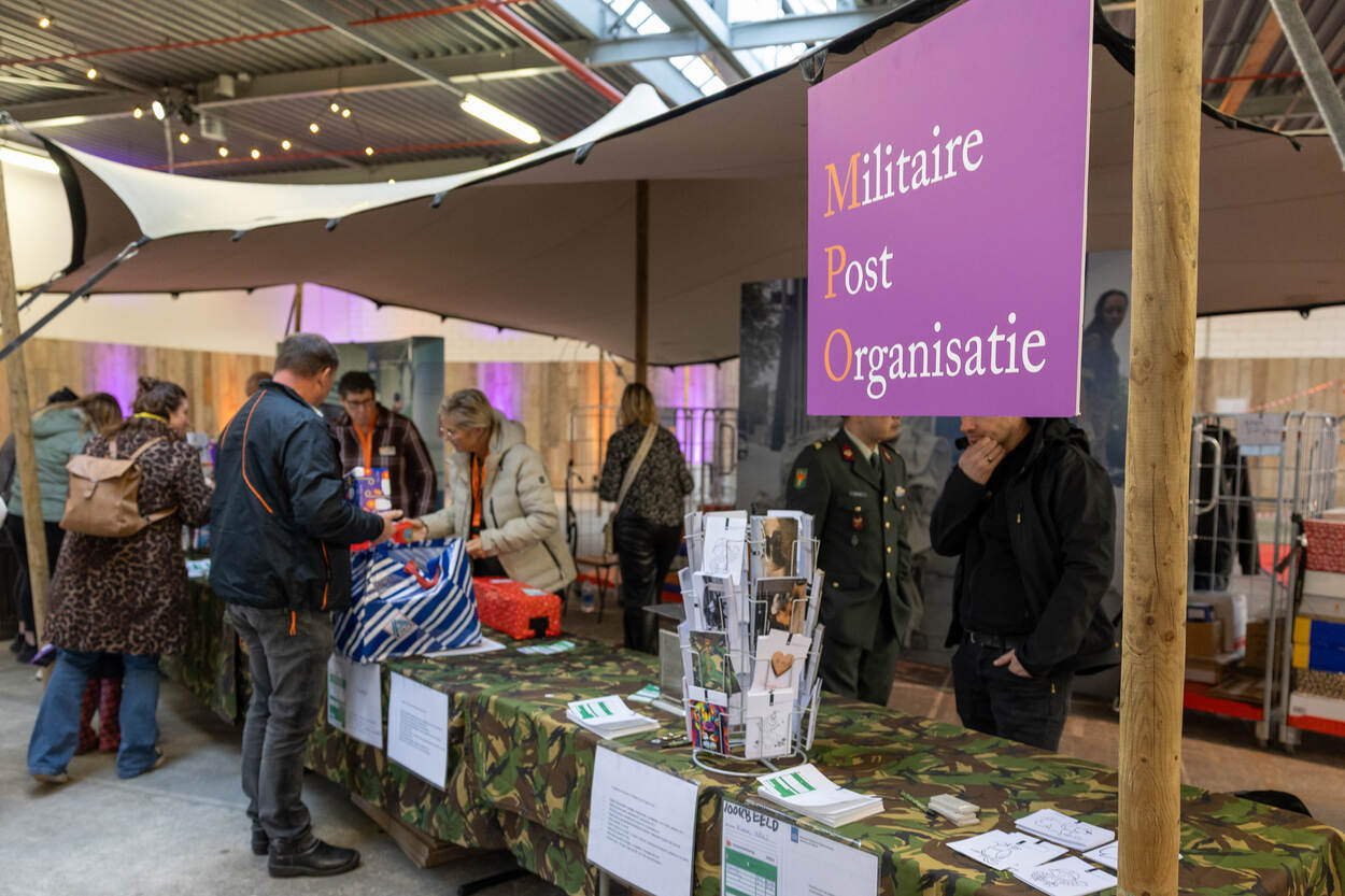 De stand van de Militaire Post Organisatie werd druk bezocht. Driehonderd pakketten namen zij in voor gratis verzending.