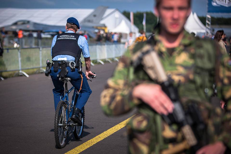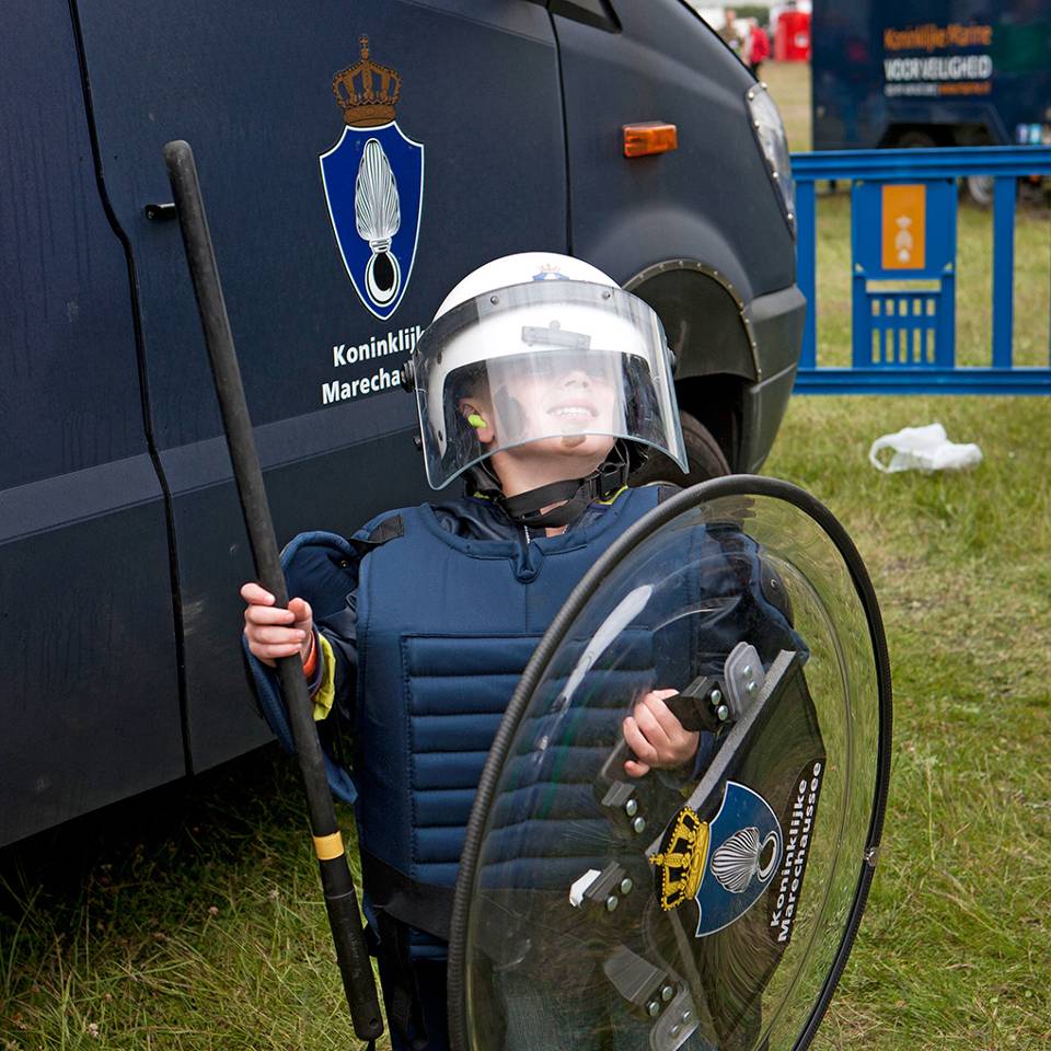De grootste uitdaging tijdens de Luchtmachtdagen was - naast het handhaven van de orde op het luchtmachtterrein - het beheersbaar houden van de bezoekersstromen, zowel op het terrein als daarbuiten. “Op het luchtmachtterrein is de KMar verantwoordelijk voor een veilig en feestelijk verloop van de dagen, daarbuiten de politie. Omdat de politie geen SGBO had ingericht, was een van onze collega’s wel vertegenwoordigd bij het regelen van de verkeersstromen door de politie. Zo pakten we de verkeersstromen buiten het terrein samen op met de politie. Dat is uniek.”
