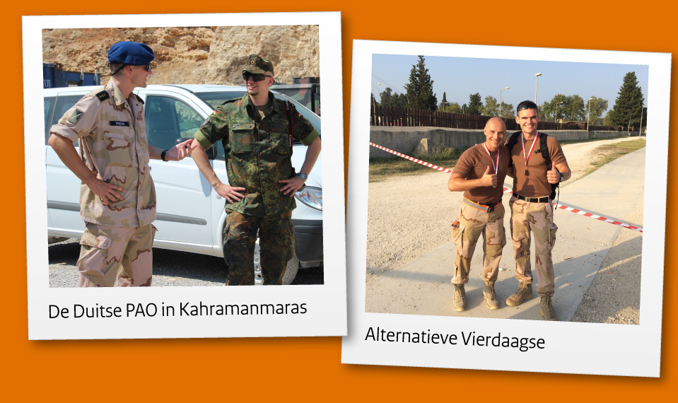 Het werken als PAO binnen het detachement bevalt me goed. De focus heeft kort gelegen op de verlengingsdiscussie en het besluit om de missie niet te verlengen, dat heeft iedereen ongetwijfeld in de media voorbij zien komen. Naast externe communicatie richt ik me ook op interne communicatie. De BMDTF heeft een intern blad waar ik verantwoordelijk voor ben. Het is één van de middelen om te zorgen voor binding tussen het personeel dat werkelijk uit elk krijgsmachtonderdeel komt. Het blad, genaamd de Patriot Post, is een luchtig blad waarin ik bijvoorbeeld reportages maak over het werk dat mensen hier doen of bijzonderheden die binnen het detachement spelen. Denk daarbij aan nieuwe infrastructurele projecten of een speciale medaille-uitreiking. In mijn functie heb ik het erg getroffen met de detachementscommandant. Kolonel Spanjer heeft namelijk gewerkt als hoofd Communicatie van de luchtmacht en is daardoor ‘communicatie-minded’.