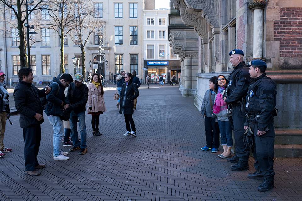 "De kunst is scherp te blijven", legt wachtmeester-1 Stefan, normaal opsporingsambtenaar in Zevenaar, uit. "Zelf doe ik dat door mezelf te dwingen te blijven observeren. Ik stel voor elke situatie een norm en bepaal wat voor gedrag of gebeurtenissen daarvan afwijken." Met de Chinese toeristen die vriendelijk lachend en met camera's 'bewapend' op de beveiligers afkomen, wordt vriendelijk omgegaan. Er worden zelfs wat foto's gemaakt. "De stad is heel divers", legt Stefan uit, "Wij zijn beveiligers maar ook uithangbord van Defensie, daar moeten we goed mee omgaan."