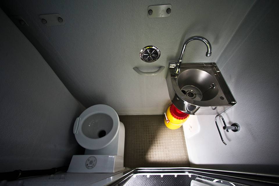 De ruimte is beperkt aan boord, maar voor de hoge nood is er wel een toilet. Verdere 'luxe' is er praktisch niet te vinden op de FRISC, afgezien van een koelkastje en een magnetron. Dat is ook niet nodig omdat de FRISC met het informatiegestuurd optreden wordt gebruikt en niet dagen achter elkaar op zee is te vinden, zoals het rijksvaartuig was.